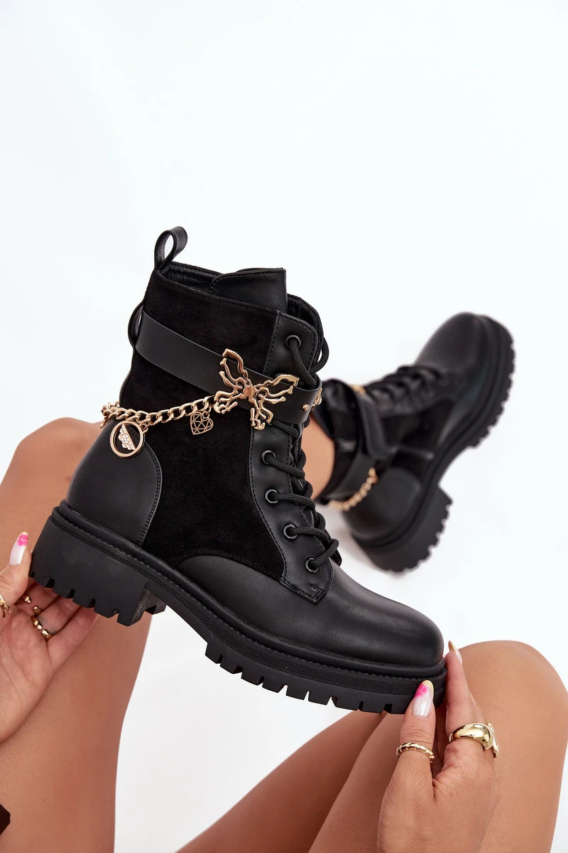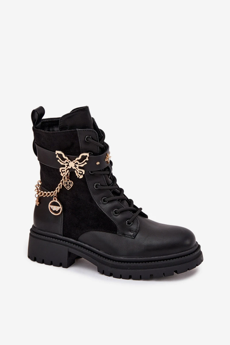 Dámské Pracovní Boty Zateplené Se Zlatým Řetězem A Přívěsky Černé Vessara