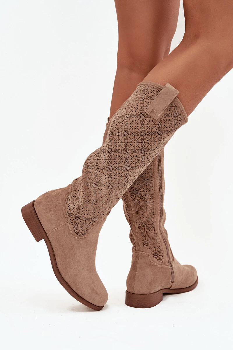 Dámské prolamované kozačky na plochém podpatku S.Barski – béžové