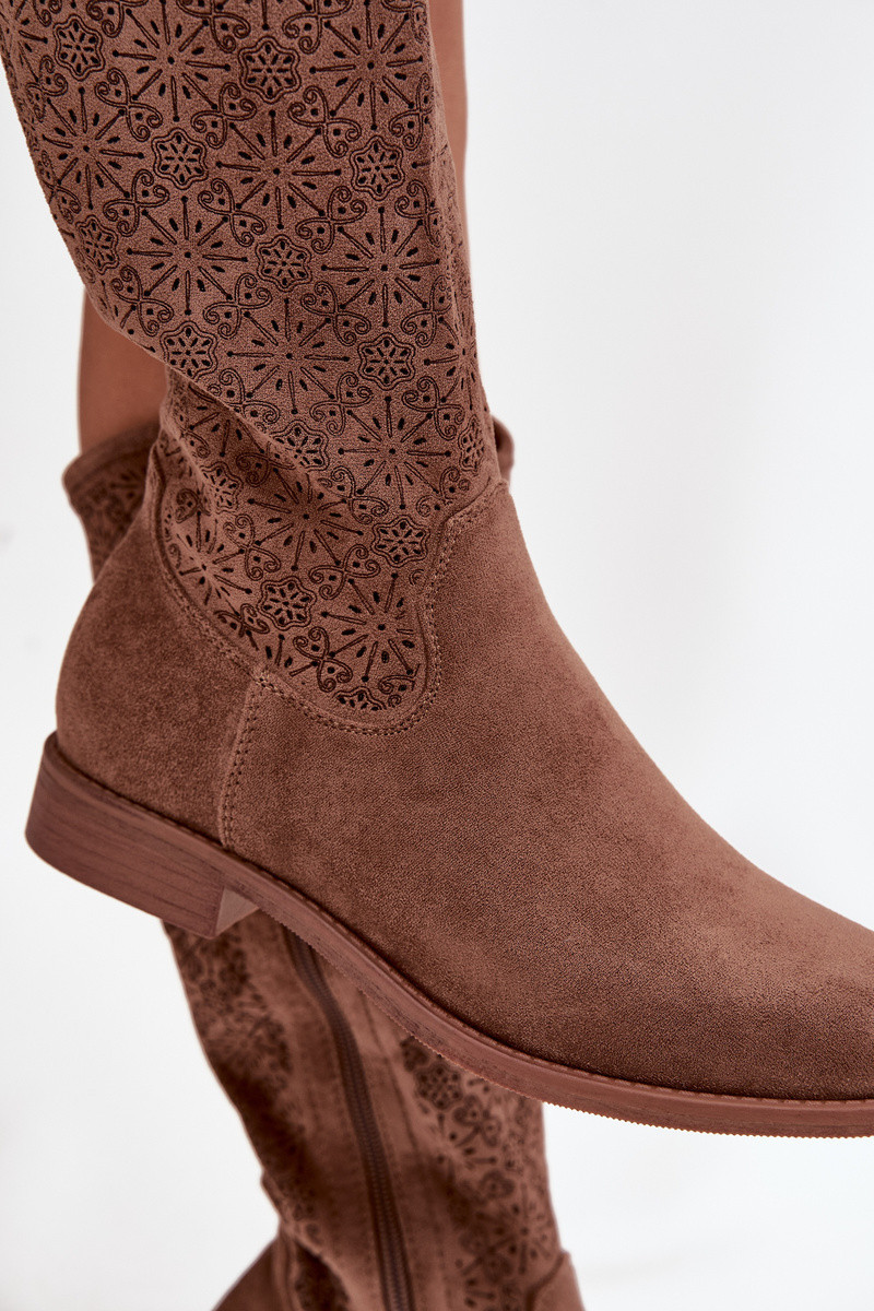 Dámské prolamované kozačky na plochém podpatku S.Barski – hnědé