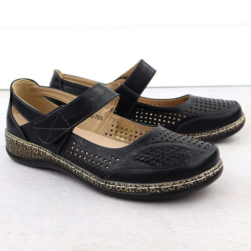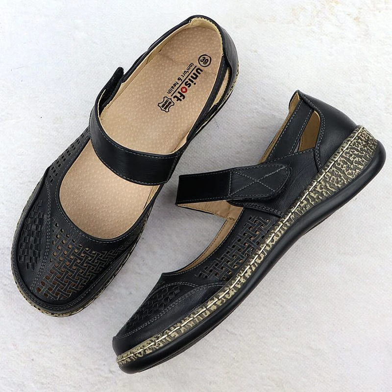Dámské prolamované polobotky na suchý zip černé Unisoft 7026