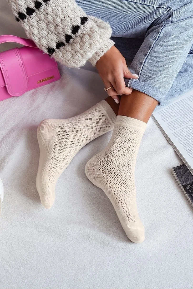 Elegantní a stylové ažurové dámské ponožky MILENA 0989.006 jsou vynikající volbou pro ženy, které ocení pohodlí a decentní design. Jsou vyrobeny z kvalitní bavlny (75 %) s přídavkem elastanu (5 %) a odolného polyamidu (20 %) a zajišťují dokonalé přilnutí k noze a vynikající cirkulaci vzduchu. Jemné ažurové provedení jim dodává výjimečný půvab a vzorovaná struktura jim dodává lehkost a eleganci. Skvěle se hodí pro každodenní stylizaci i elegantnější outfity.