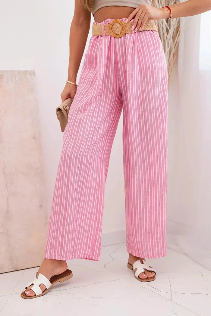 Dámské pruhované viskózové kalhoty se širokými nohavicemi růžový