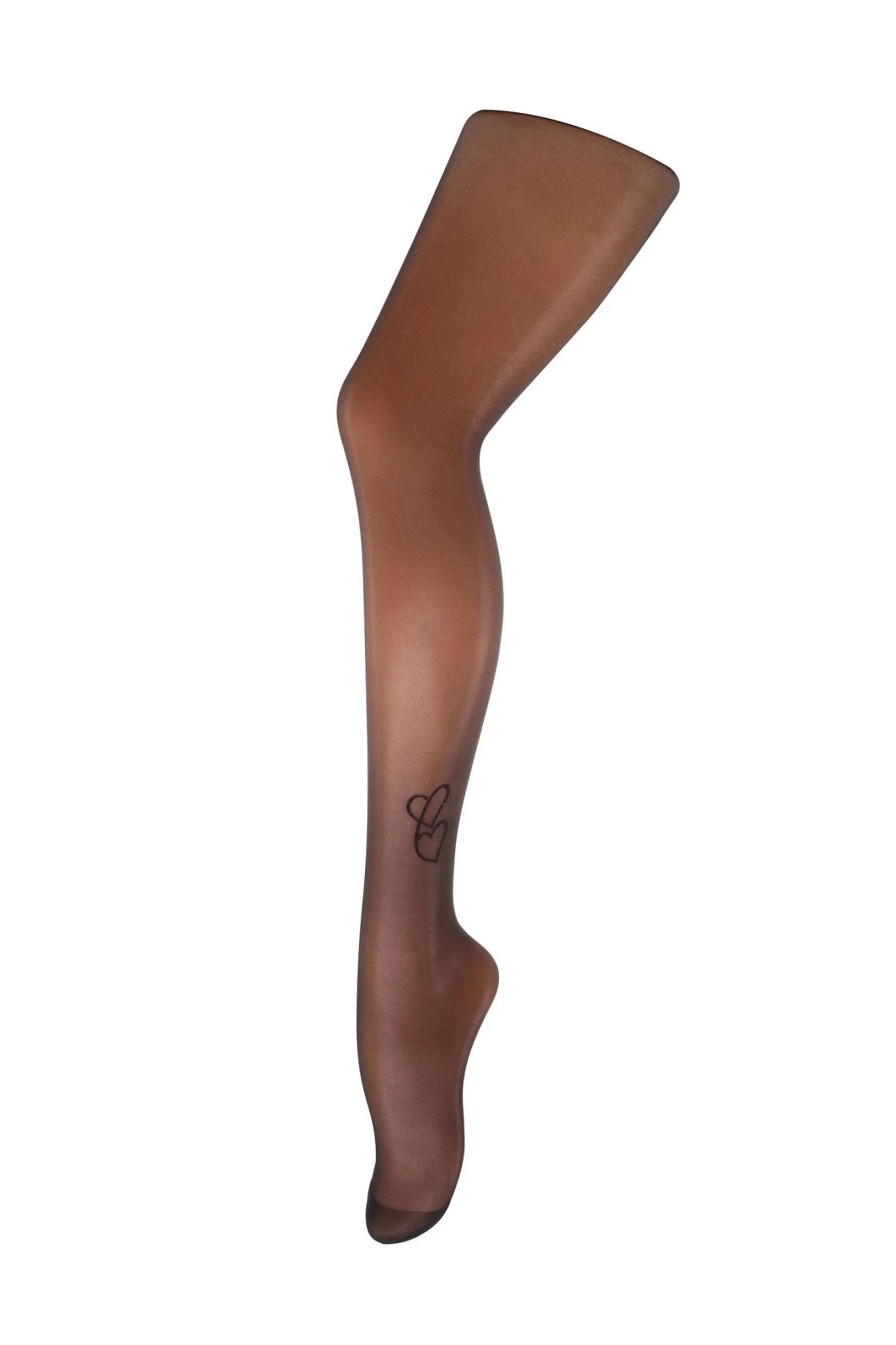 Dámské punčocháče 06 Lovely plus GATTA - černá barva - z pletené elastanové příze - zdobené tetováním na lýtku - malé zesílení na špičkách - matné - 20 DEN