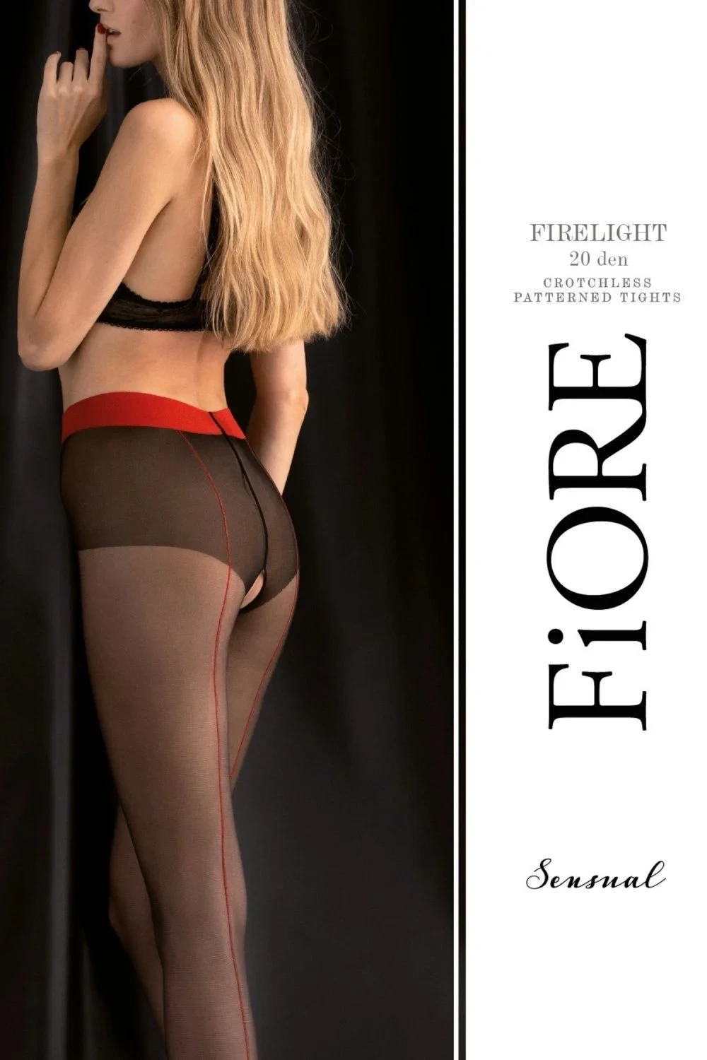 Dámské punčocháče 5035 Firelight FIORE - černá barva - šev v zadní části - průstřih v rozkroku - špičky bez zesílení - 20 DEN