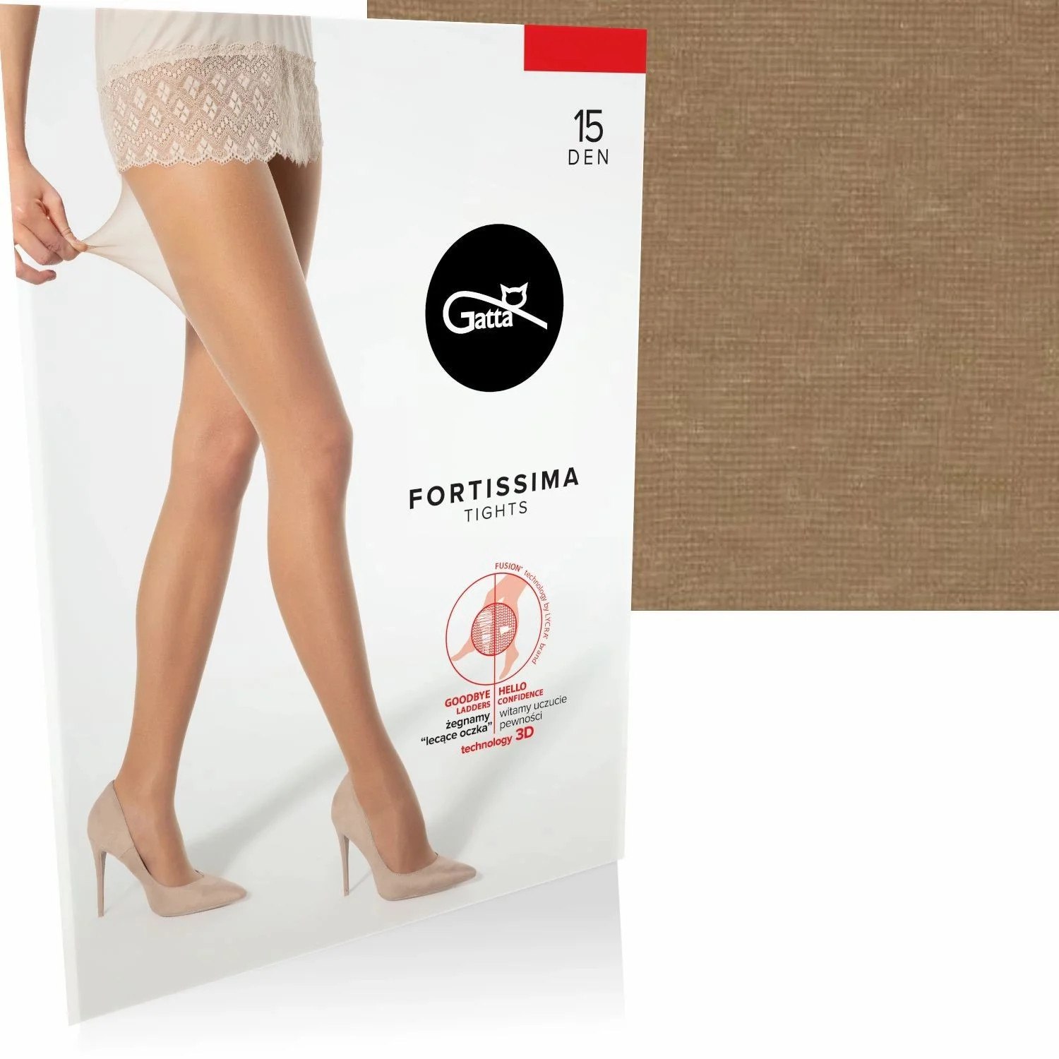 Dámské punčocháče Fortissima golden GATTA - zlatá barva - z vlákna LYCRA XTRA LIFE - hladké - mat - se zvýšenou odolností proti zatrhávání a pouštění ok - 15 DEN