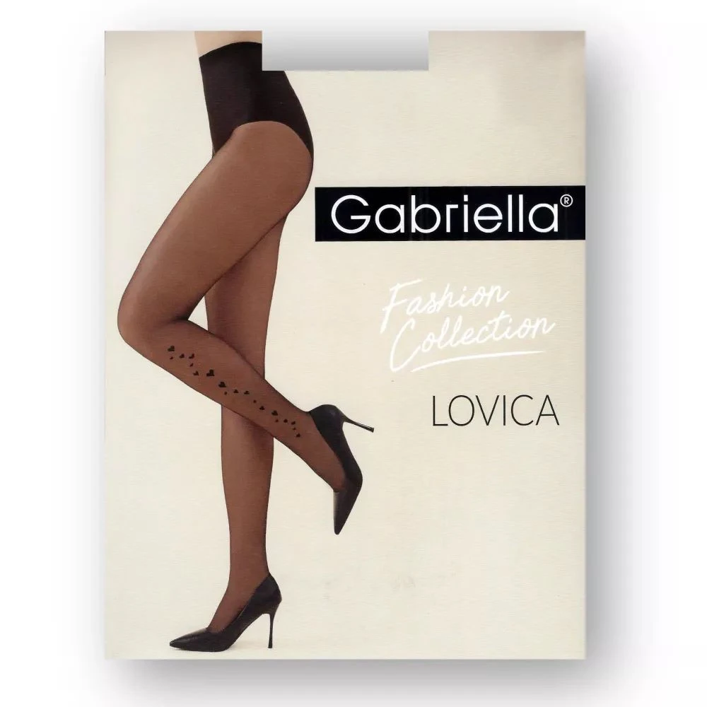 Dámské punčocháče 1193 Lovica GABRIELLA - černá barva - z příze tupu LYCRA - bez vyznačené kalhotkové části - bez zesílené špice - v pase zakončené ozdobnou krajkou se silikonem pro pohodlné nošení - ploché švy - polomatné a průsvitné