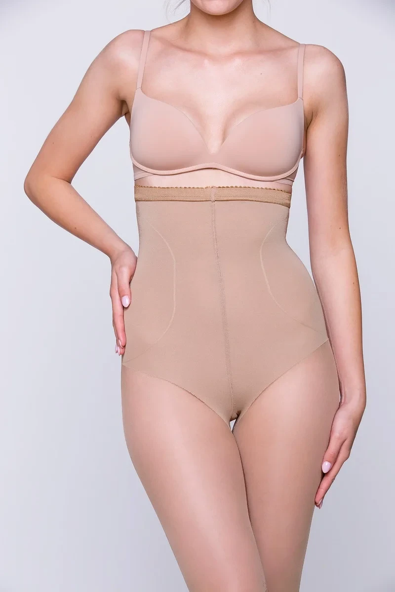 Dámské punčochové kalhoty s vysokým pasem. Jsou korigační a krásně tvarují pas, břicho a oblast pod prsy. Díky speciální konstrukci se dobře přizpůsobí na postavu. Mají ploché švy, malý klín a neviditelně zpevněné prsty.
