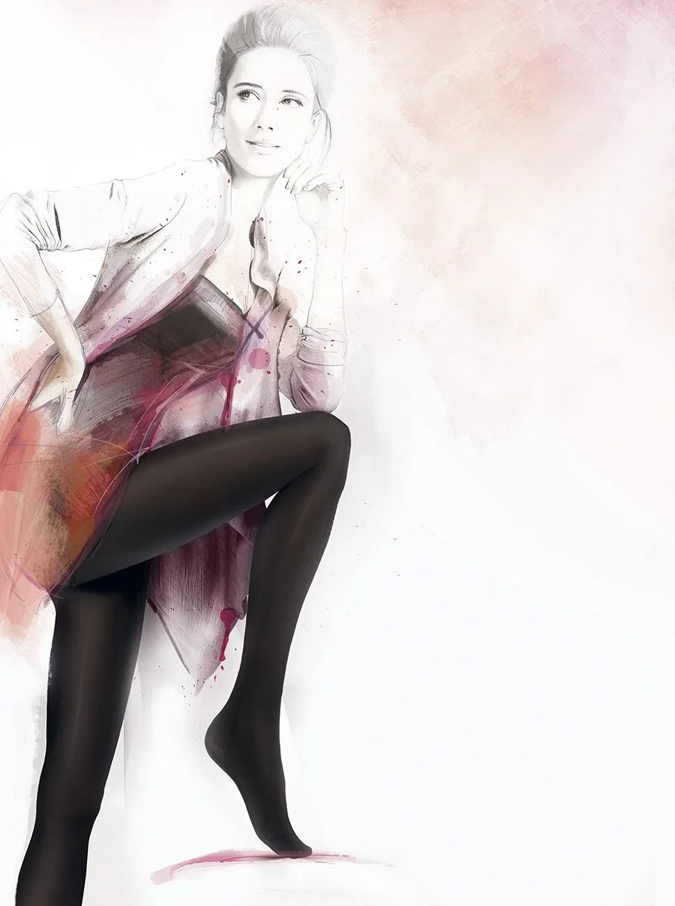 Punčocháče jsou vyrobené z moderní příze Lycra 3D. Model je měkký a na dotyk působí jako samet.