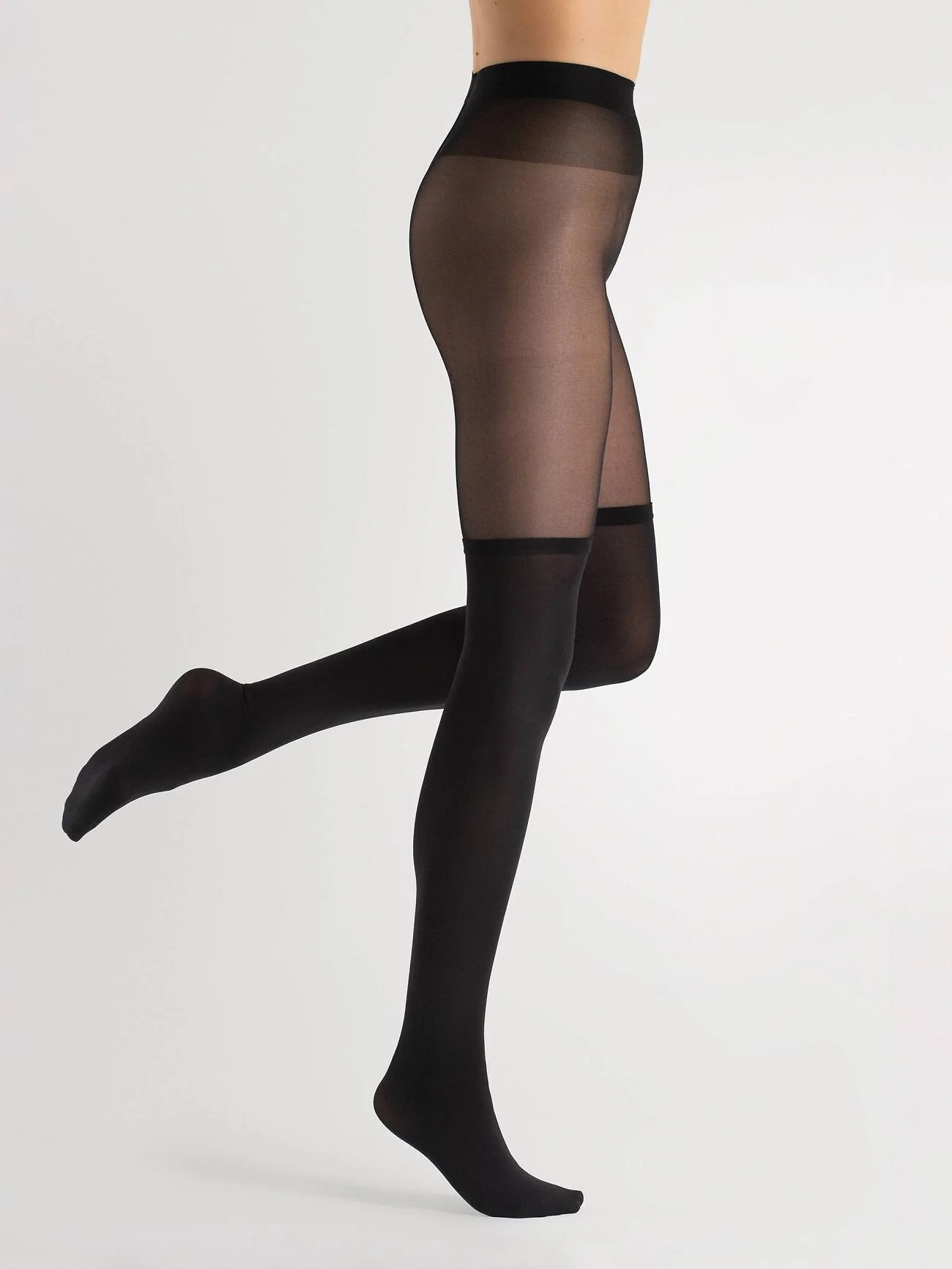 Úchvatné dámské punčochové kalhoty, které imitují nadkolenky.