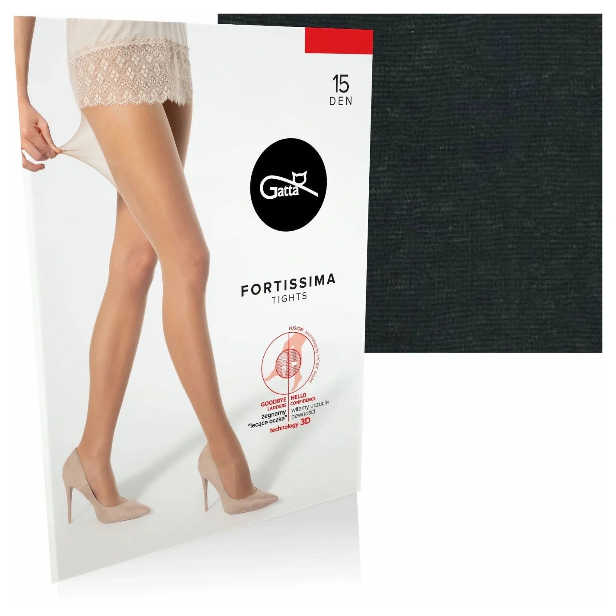 Dámské punčochové kalhoty Fortissima black plus GATTA - černá barva - z vlákna LYCRA XTRA LIFE - hladké - mat - se zvýšenou odolností proti zatrhávání a pouštění ok - 15 DEN