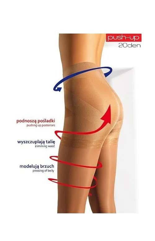 Punčocháče Push-Up jsou punčochové kalhoty vynikající kvality, které díky dvojitému opletu a zesílené špičce vykazují zvýšenou odolnost proti tahání a tzv. „létající oči“.