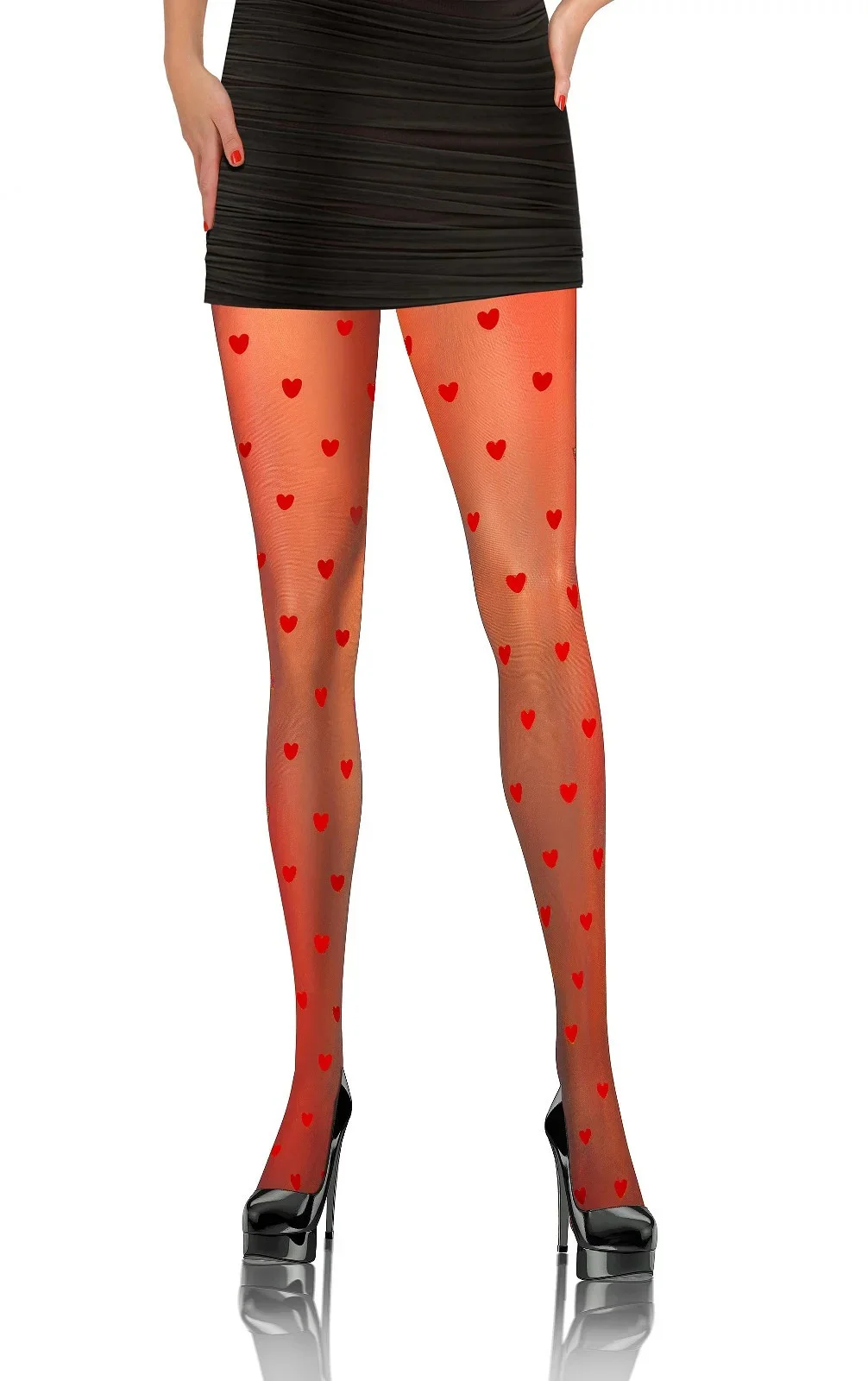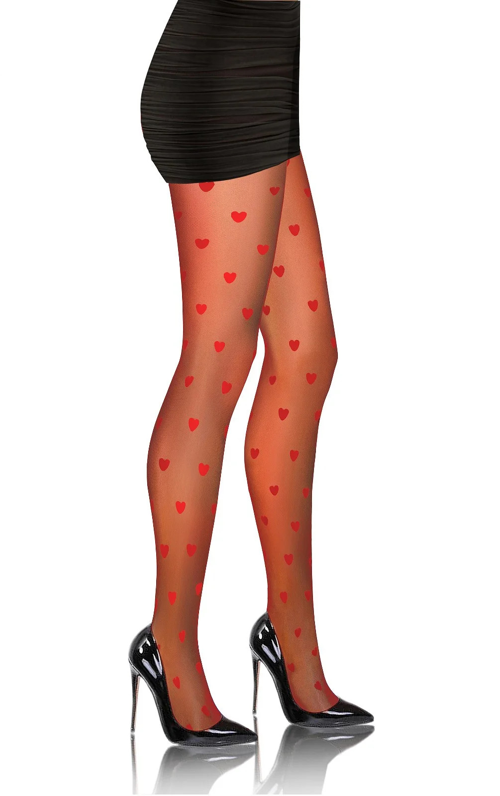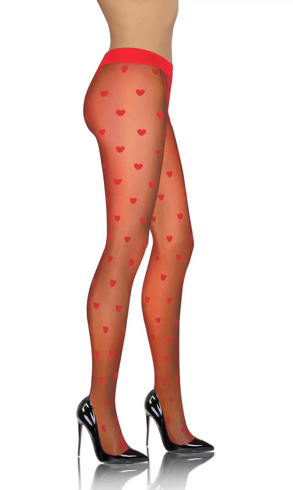 Punčocháče nemají sed a jsou ozdobené vzorem srdíček.