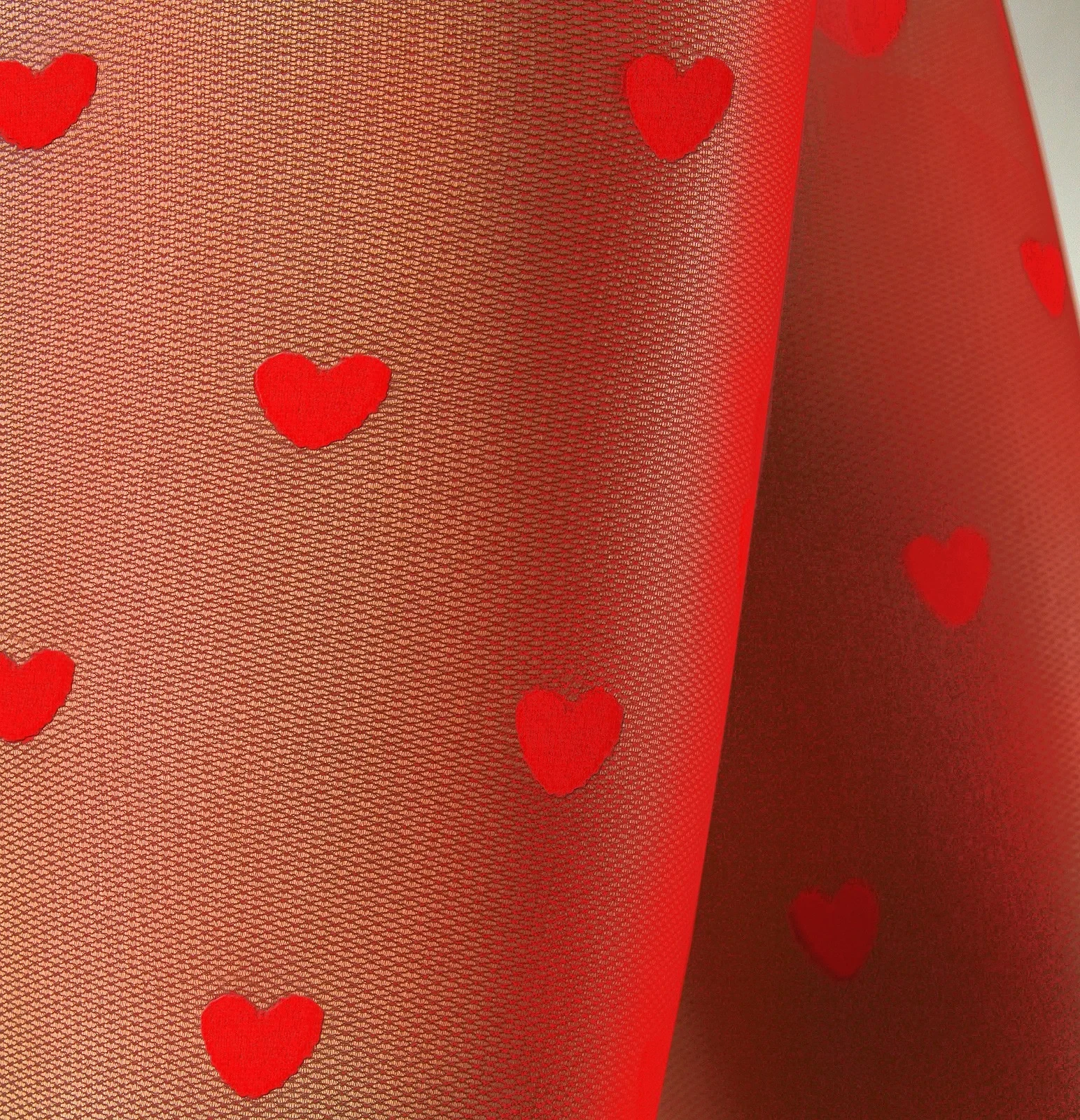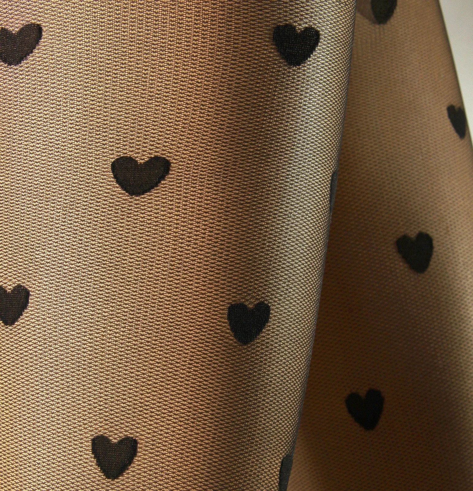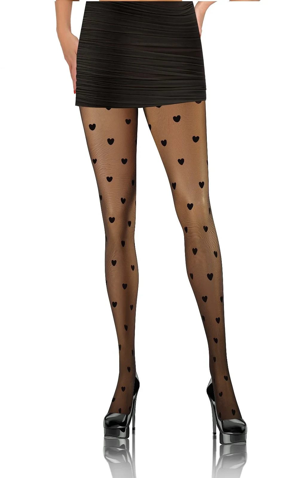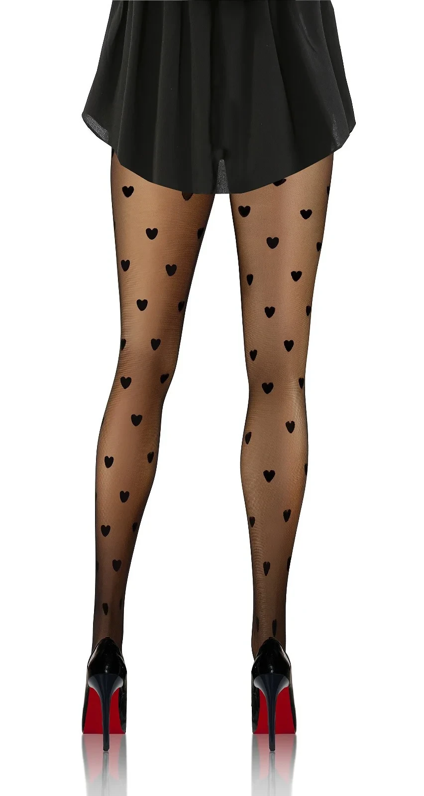 Punčocháče nemají sed a jsou ozdobené vzorem srdíček.