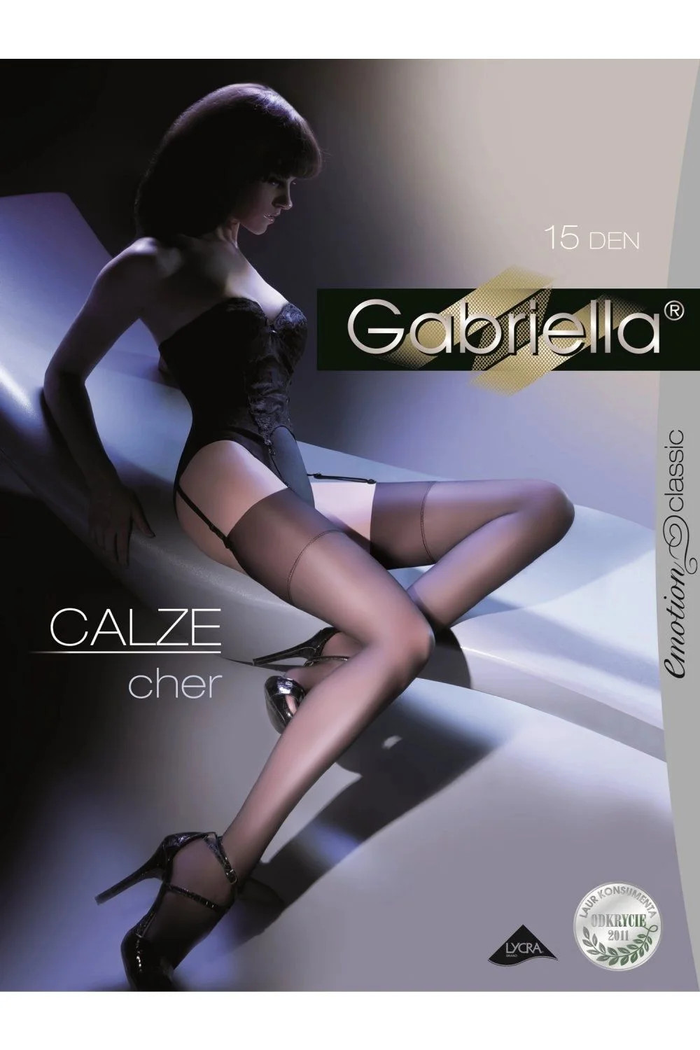 Dámské punčochy 226 Cher beige GABRIELLA - béžová barva - s přídavkem elastanu - určené k nošení s podvazkovým pásem - bez zesílené sedací části - 15 DEN