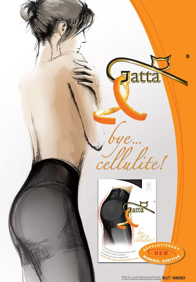 Dámské punčochy Gatta Bye Cellulite, neprůhledné, matné, vyrobené ze speciální příze s aktivními minerálními substancemi. 50 Den. Speciální minerální přídavek absorbuje v kontaktu s kůží teplo těla a následně se změní na infračervené paprsky. Tyto paprsky pronikají hluboko do kožní tkáně, což vede k jemnému, ale intenzívnímu ohřívání kožních buněk. Stimulují buněčnou přeměnu, napravují prokrvení pokožky a její celkový vzhled, zmírňují pomerančovou kůži. Punčocháče jsou vyrobeny z příze NILIT, zlepšují průtok lymfy což má zeštíhlující a anti celulitida efekt. Tyto efekty jsou nejdříve vidět v okolí boků, hýždí a břicha po cca 4 týdnech užívání. Jejich efektivnost se nesnižuje ani po mnohonásobném praní díky použití speciální technologie