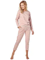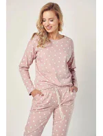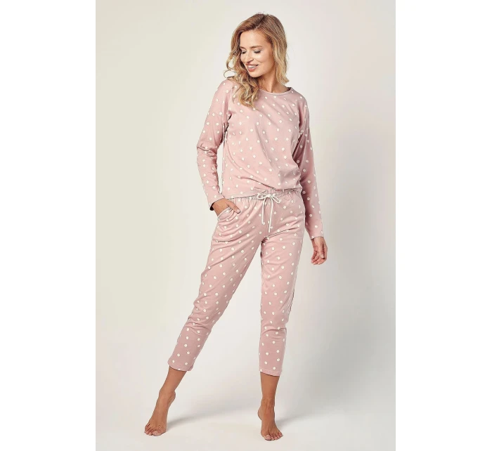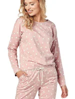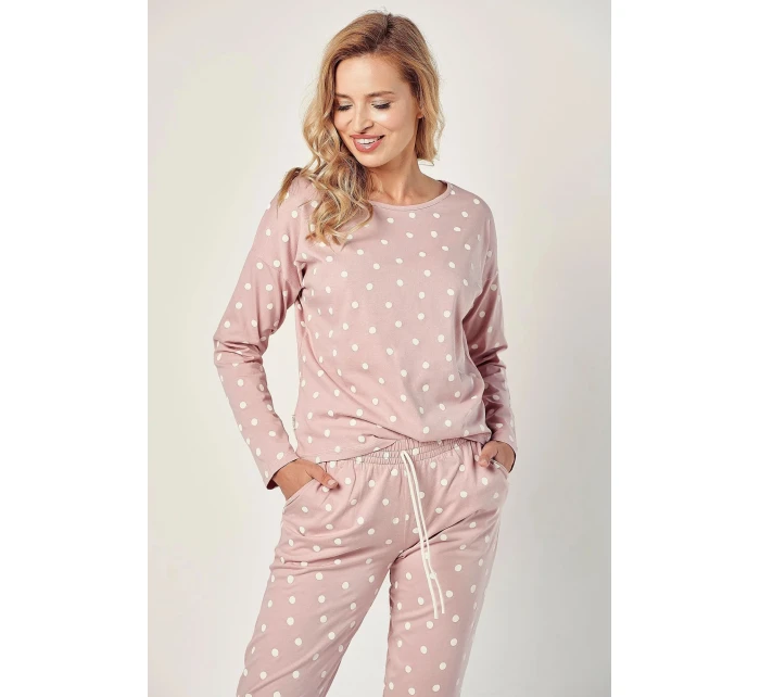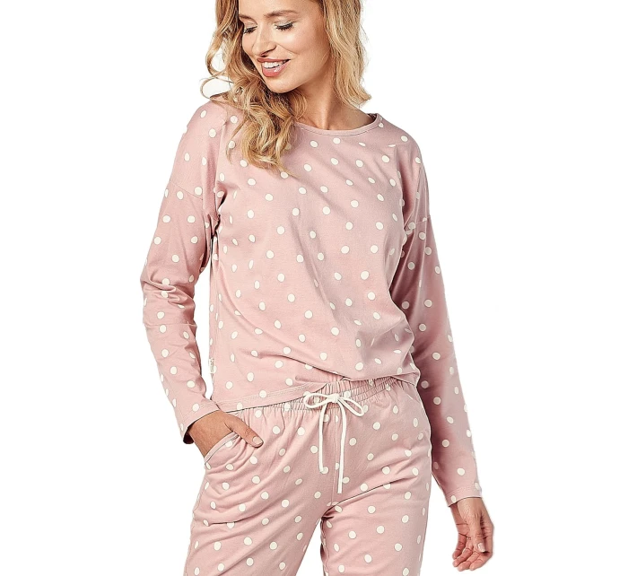 Dámské pyžamo 2979 Chloe TARO - z vysoce jakostní bavlny - tričko je růžové barvy s dlouhými rukávy - růžové kalhoty s kapsami - celý komplet je ozdobený bílými puntíky