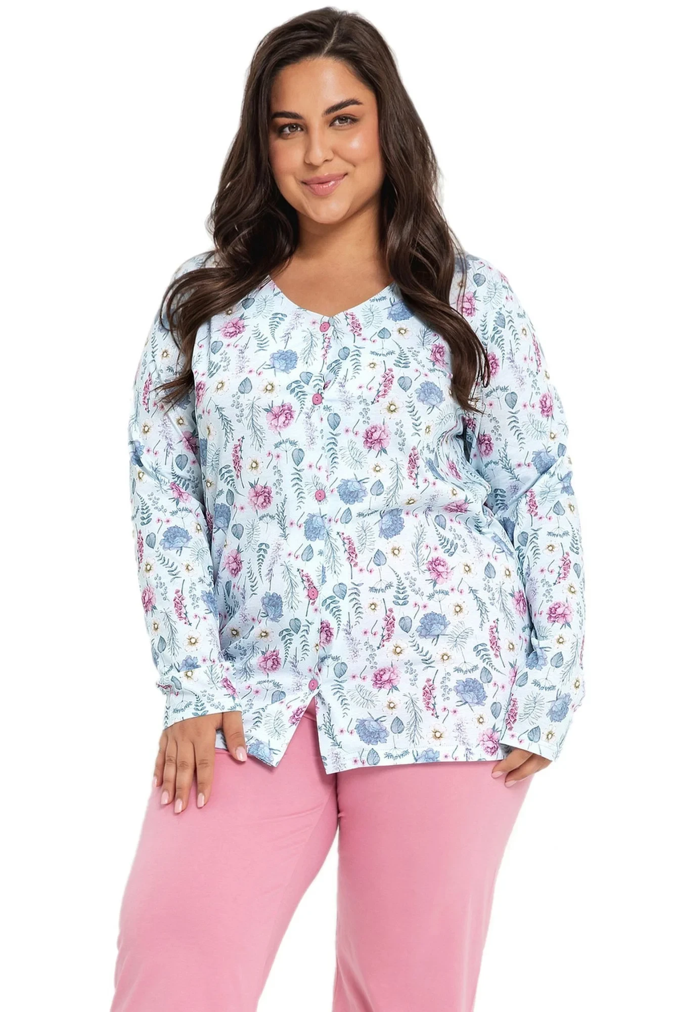 Dámské pyžamo 3009 Valencia TARO - bílá barva - z vysoce kvalitní a měkké bavlny - tričko bílé barvy s dlouhými rukávy - s květinovým motivem - zapínání na knoflíky - dlouhé kalhoty růžové barvyMateriálové složení: 100% bavlna