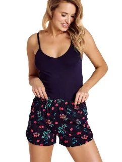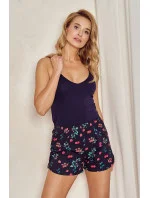 Dámské pyžamo 3111 Delia TARO - z vysoce kvalitní bavlny - tílko je tmavě modré barvy s úzkými ramínky - vzorované kraťasyMateriálové složení: 94% bavlna + 6% elastan