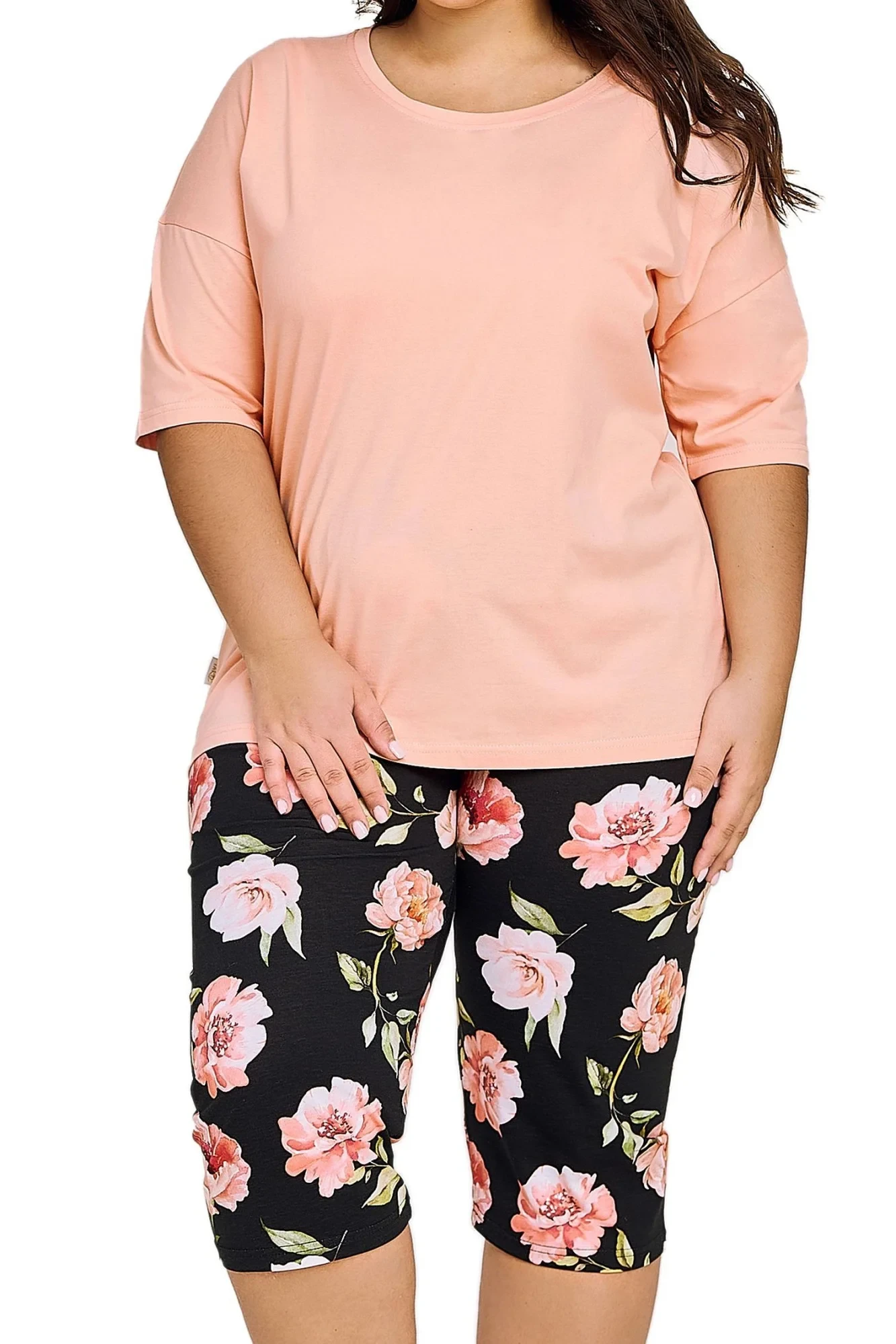Dámské pyžamo 3161 Margot TARO - broskvová barva - z vysoce jakostní bavlny - tričko je broskvové barvy s krátkými rukávy - vzrované capri kalhotyMateriálové složení: 100% bavlna
