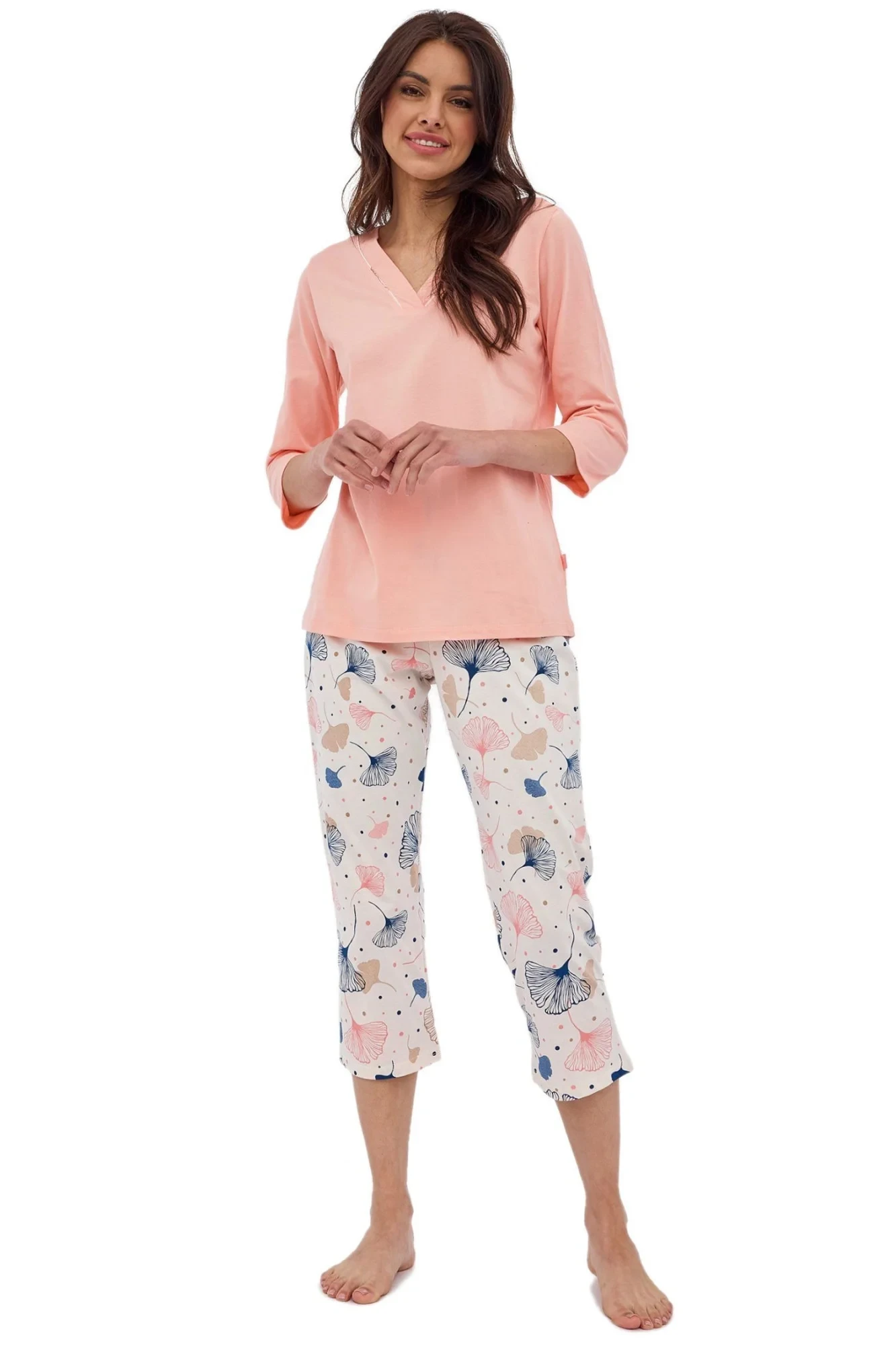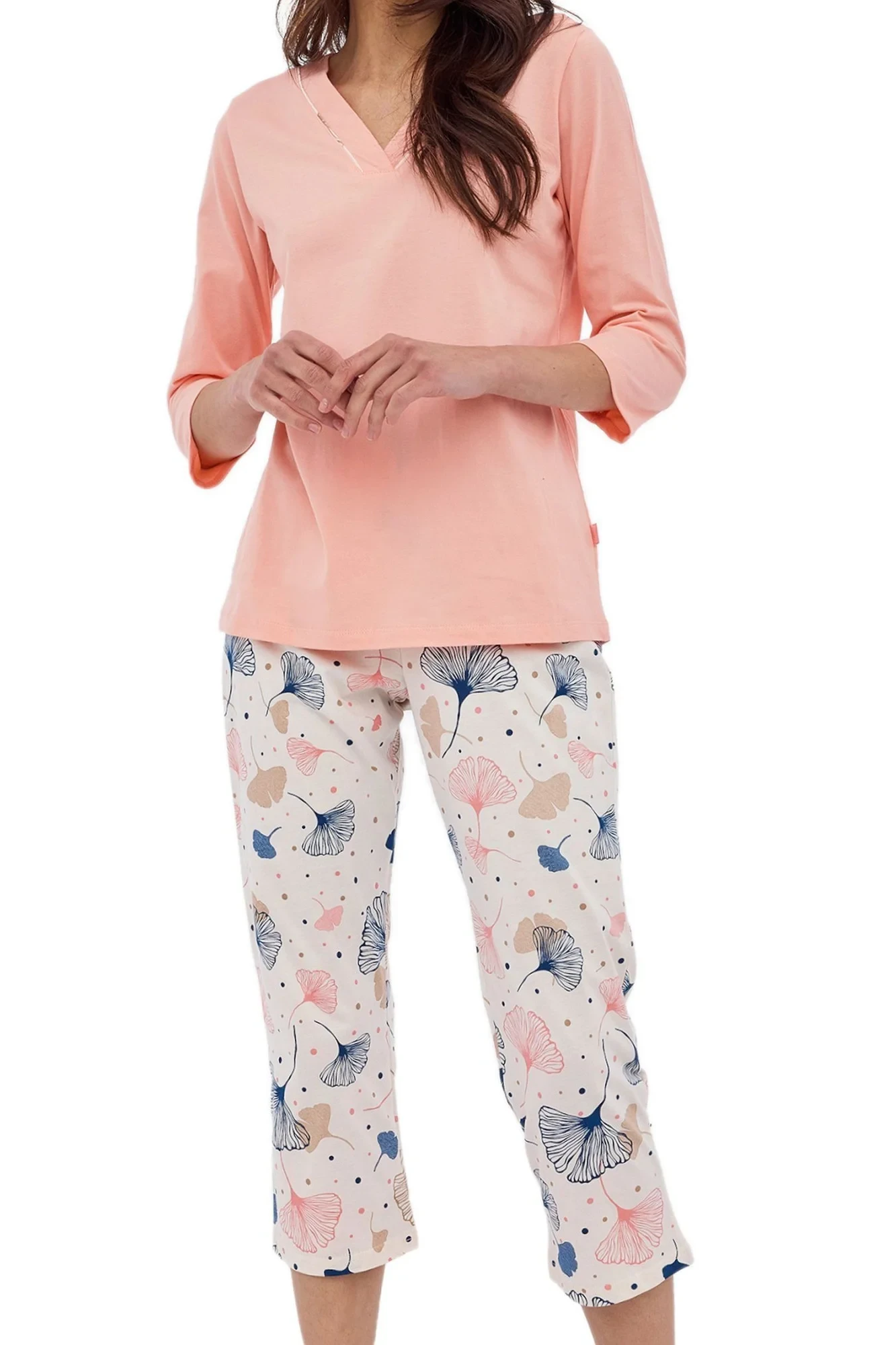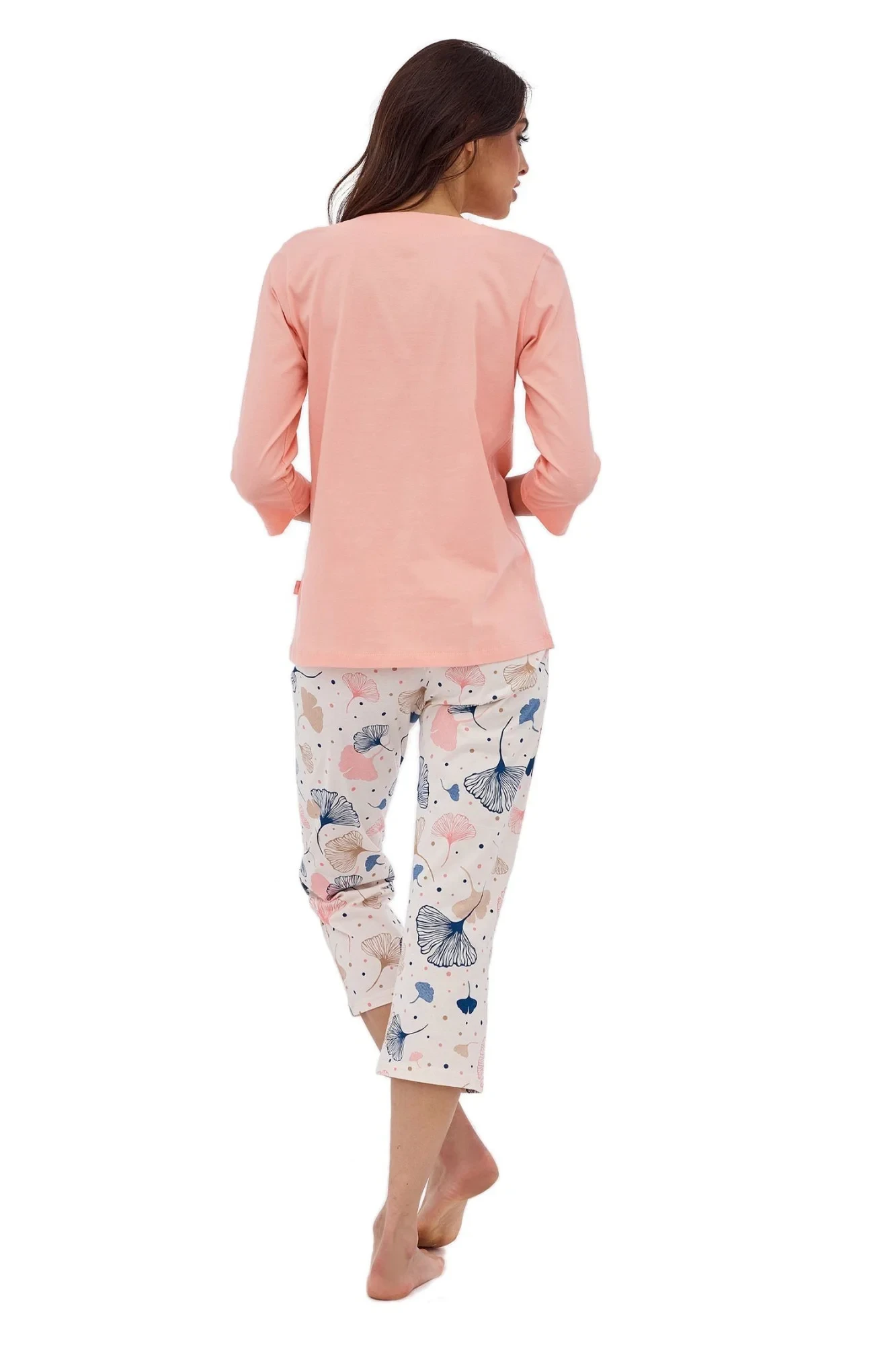Dámské pyžamo 389/389 Nina plus CORNETTE - růžová barva - z vysoce jakostní bavlny - růžové tričko s tříčtvrtečními rukávy - se vzorem - vzorované kalhoty - v pase guma - pyžamo je vhodné i na denní nošení