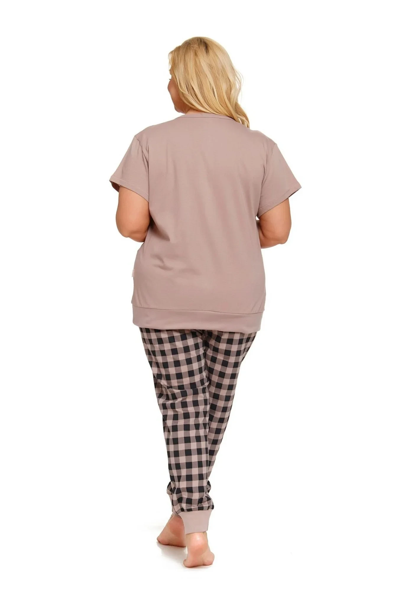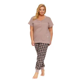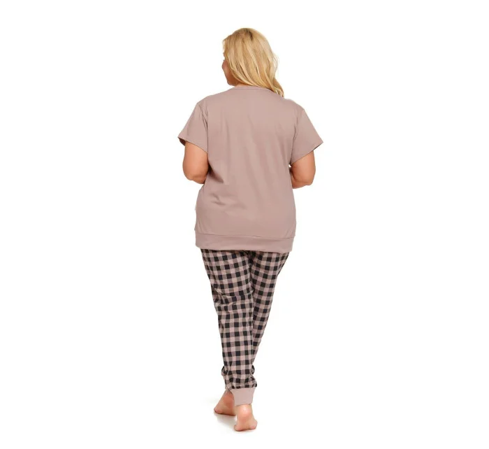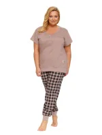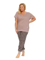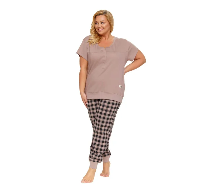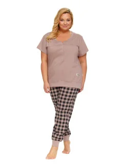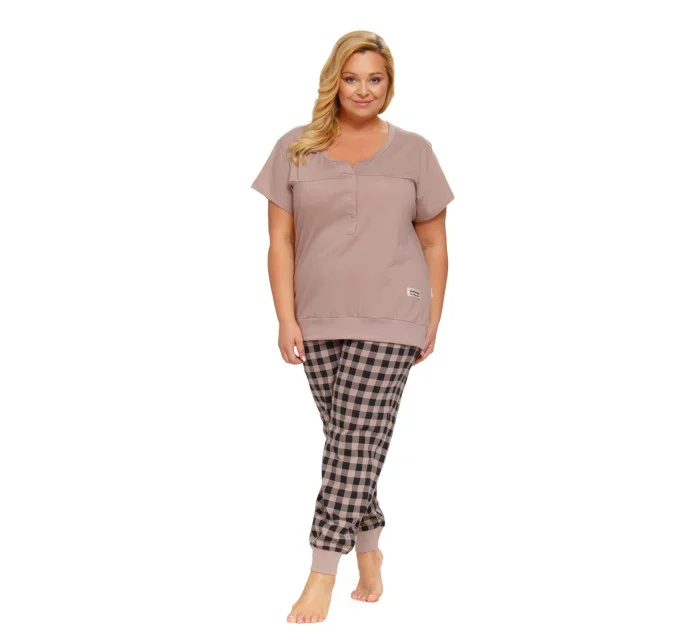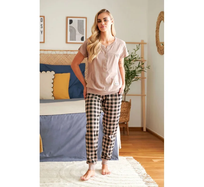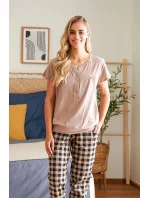 Dámské pyžamo 4430 beige Doctornap - z velmi kvalitní a příjemné bavlny - béžové tričko s krátkými rukávy - zapínání na patentky - dlouhé kárované kalhoty zakončené stahujícím lemem - certifikát OEKO-TEX Standard 100Materiálové složení: 100% bavlna