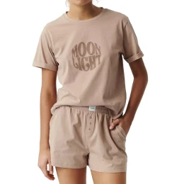 Dámské pyžamo 487 beige Atlantic - z vysoce jakostní bavlny - béžové tričko s krátkými rukávy - kraťasy béžové barvy s kapsami - netlakový elastický pas s logem ATLANTIC - plná volnost pohybu a pohodlí při nošení