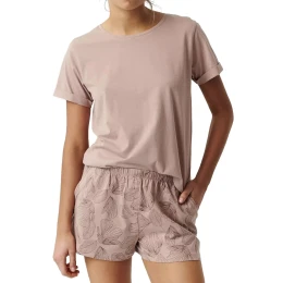 Dámské pyžamo 489 powder Atlantic - z vysoce jakostní bavlny - starorůžové tričko s krátkými rukávy - vzorované šortky s kapsami - široký elastický pas - prodyšná látka, která dobře odvádí vlhkost - střih zajišťující pohodlí a volnost pohybu - kvalitní bavlna příjemné na dotek a šetrná k pokožce