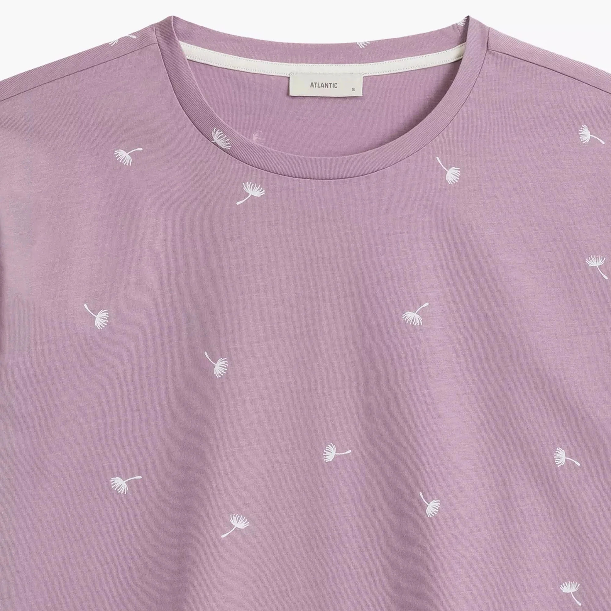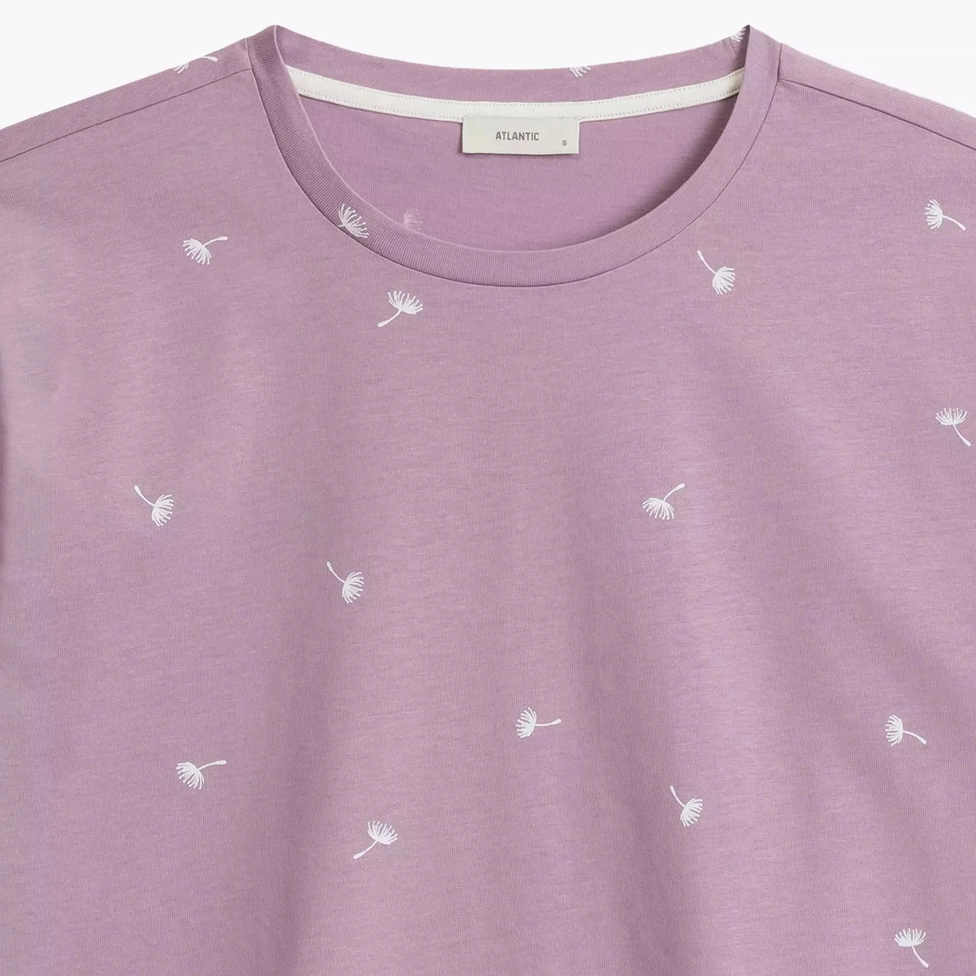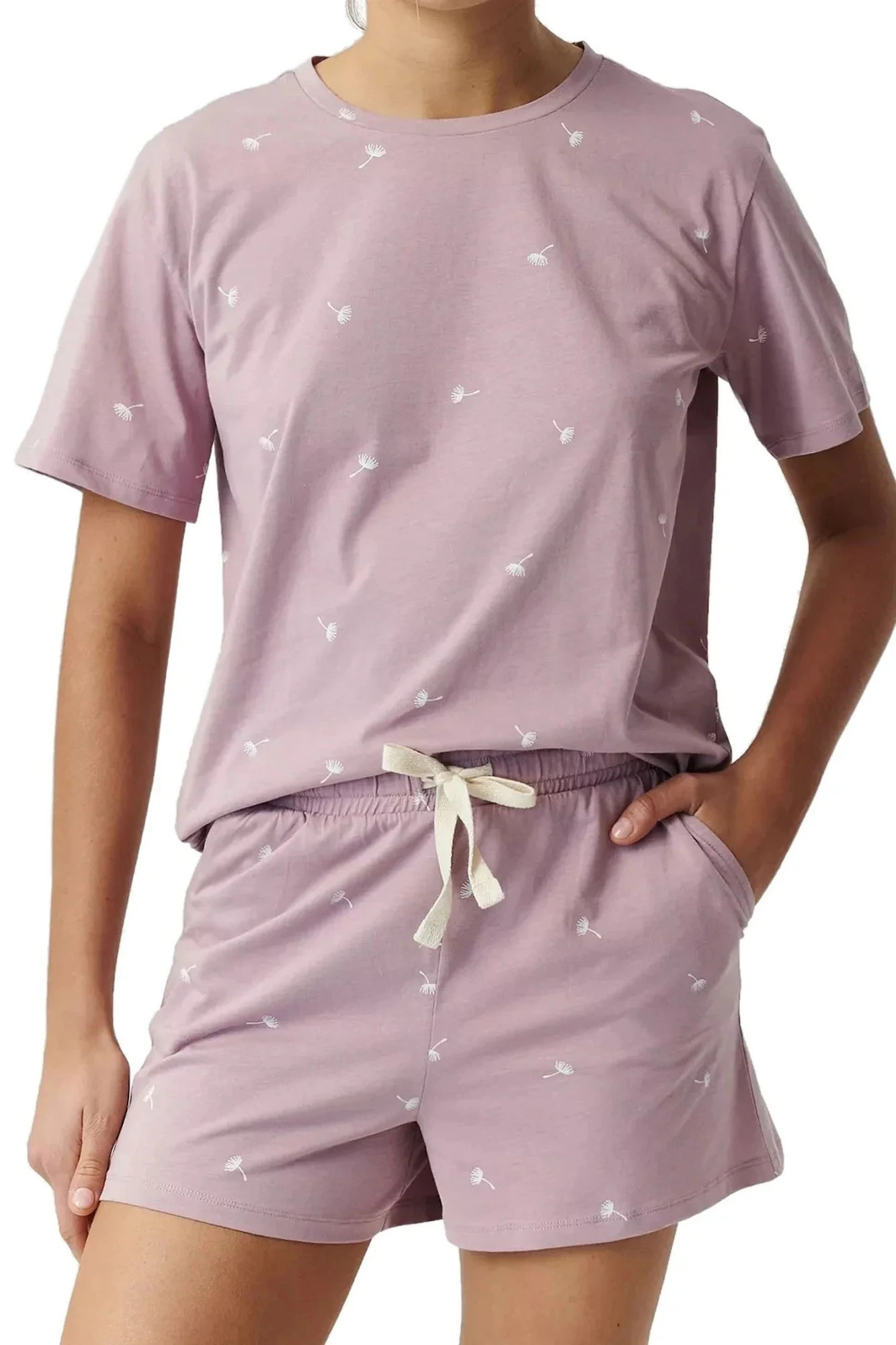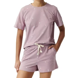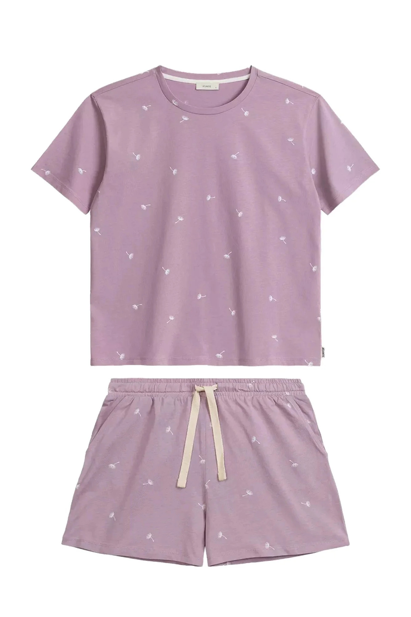Dámské pyžamo 491 lavender Atlantic - z vysoce jakostní bavlny - fialové tričko s krátkými rukávy - šortky s kapsami - s potiskem - zavazování v pase na šňůrku - prodyšná látka, která dobře odvádí vlhkost - střih zajišťující pohodlí a volnost pohybu - kvalitní bavlna příjemné na dotek a šetrná k pokožce