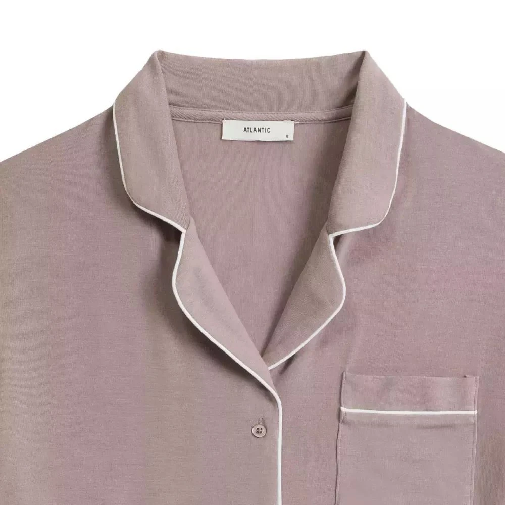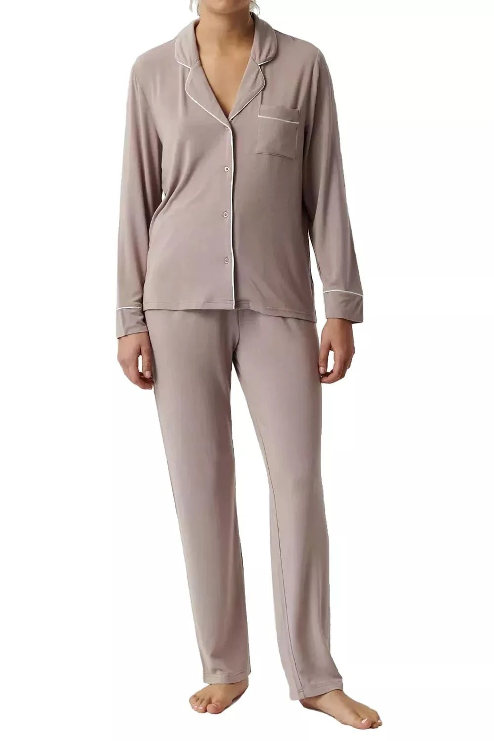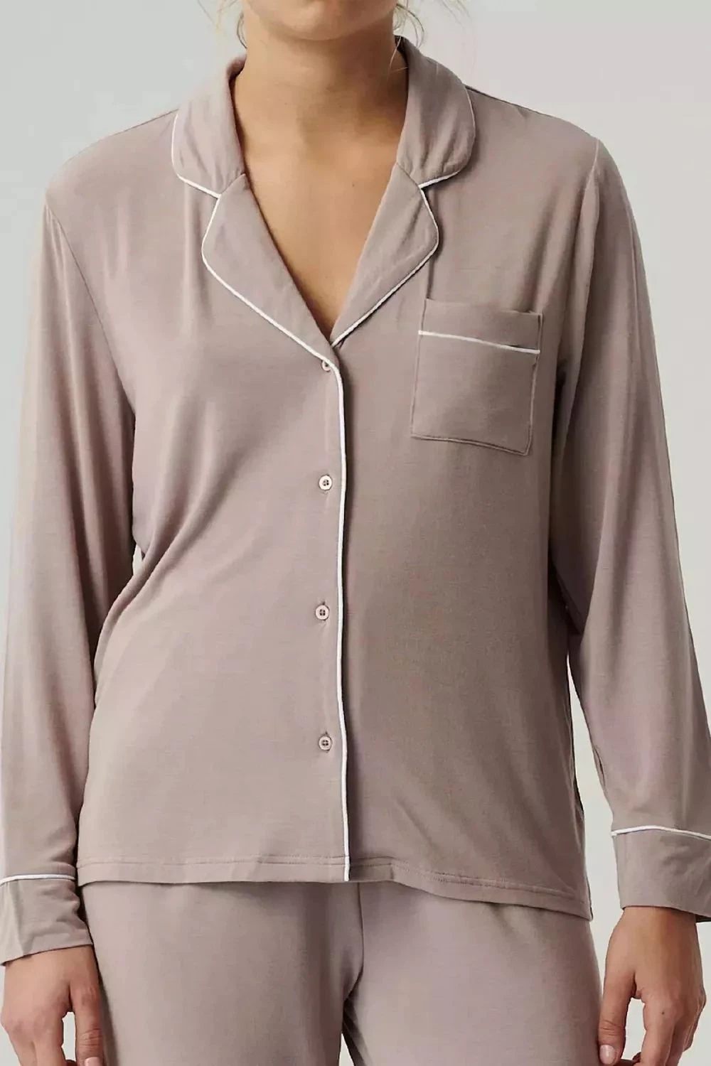 Dámské pyžamo 495 beige Atlantic - z vysoce jakostní bavlny - béžová košile s dlouhými rukávy - s límečkem - na přední straně ozdobená kapsičkou - zapínání na knoflíky - dlouhé béžové kalhoty - nastavitelná guma v pase