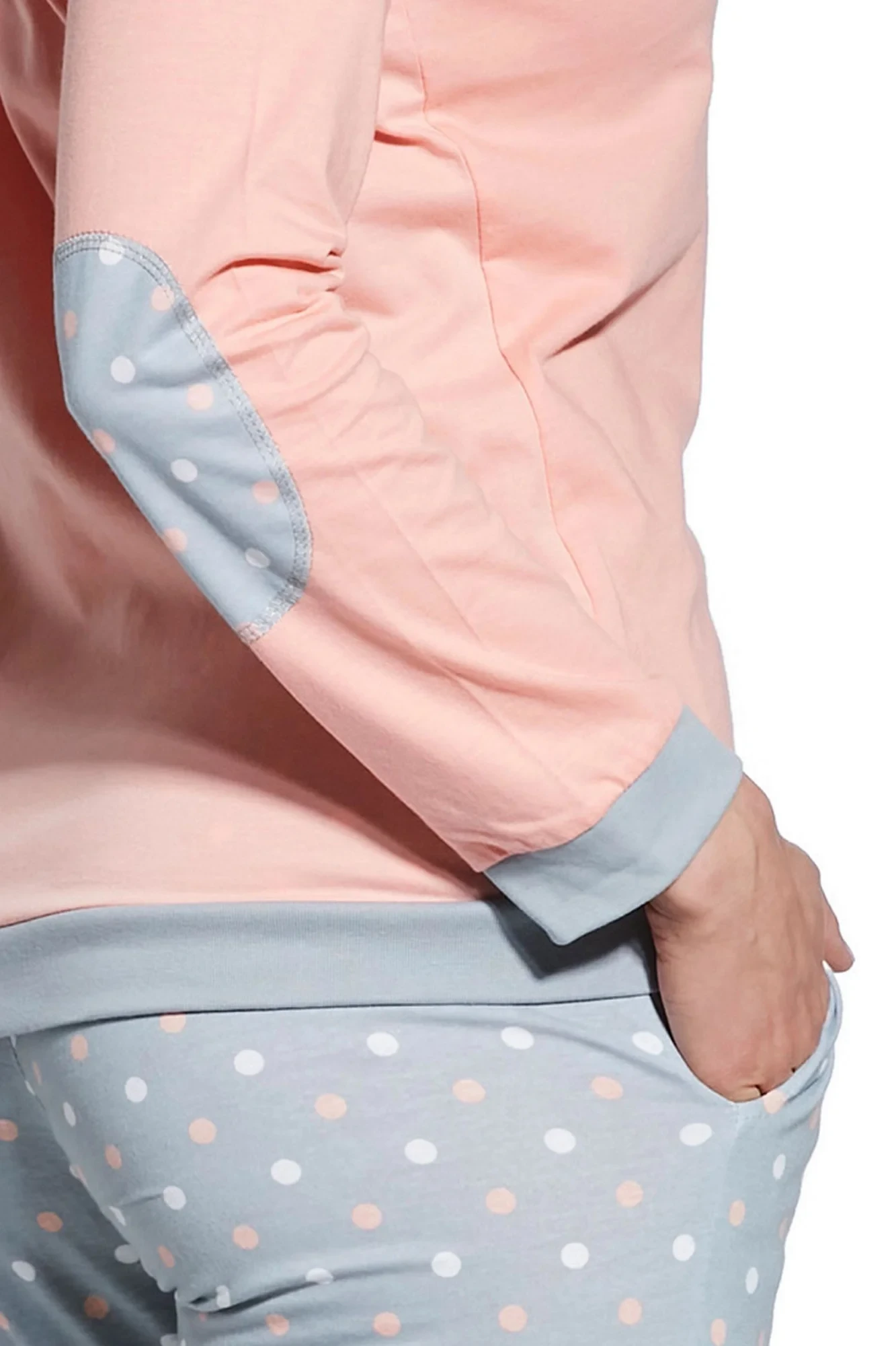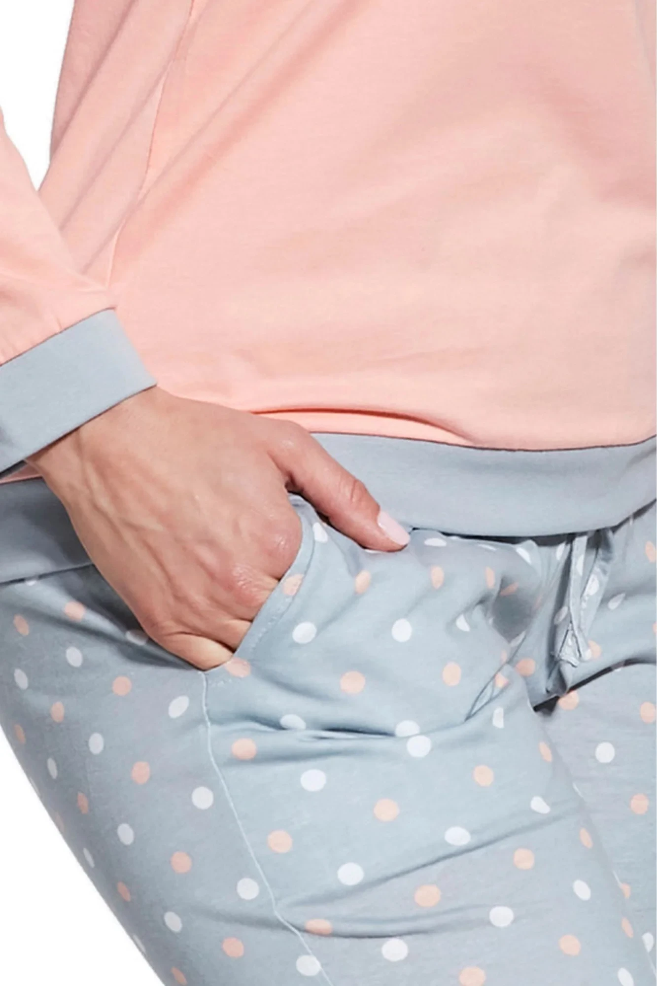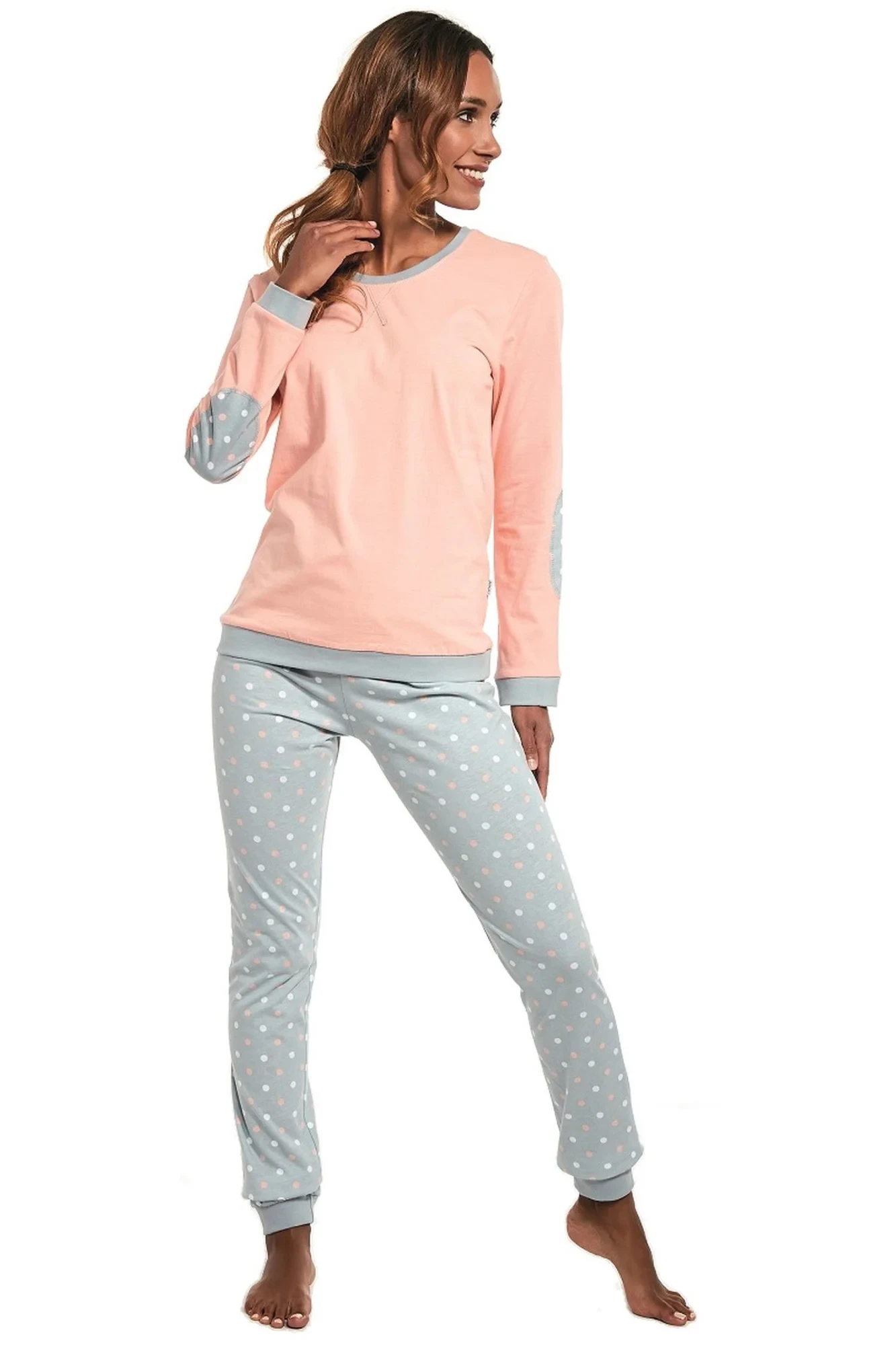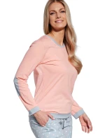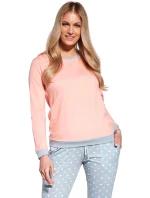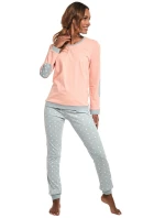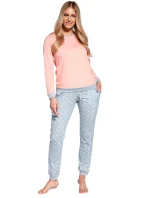 Dámské pyžamo 634/60 Meggie CORNETTE - z vysoce kvalitní a na dotyk příjemné bavlny - broskvové tričko s dlouhými rukávy - zdobené lemy - dlouhé vzorované kalhotyMateriálové složení: 100% bavlna