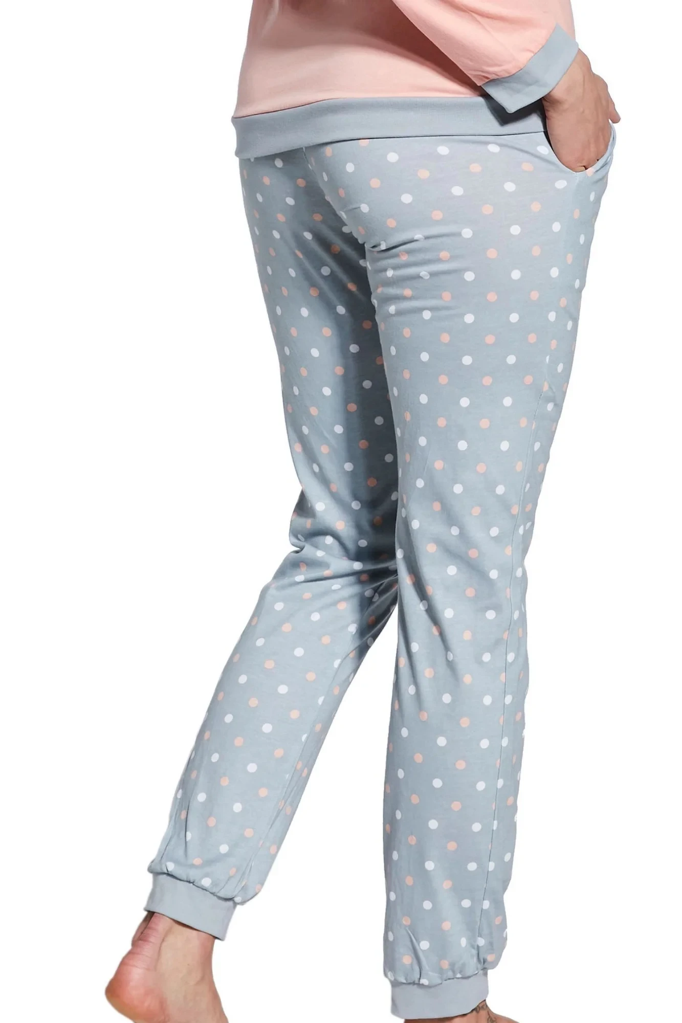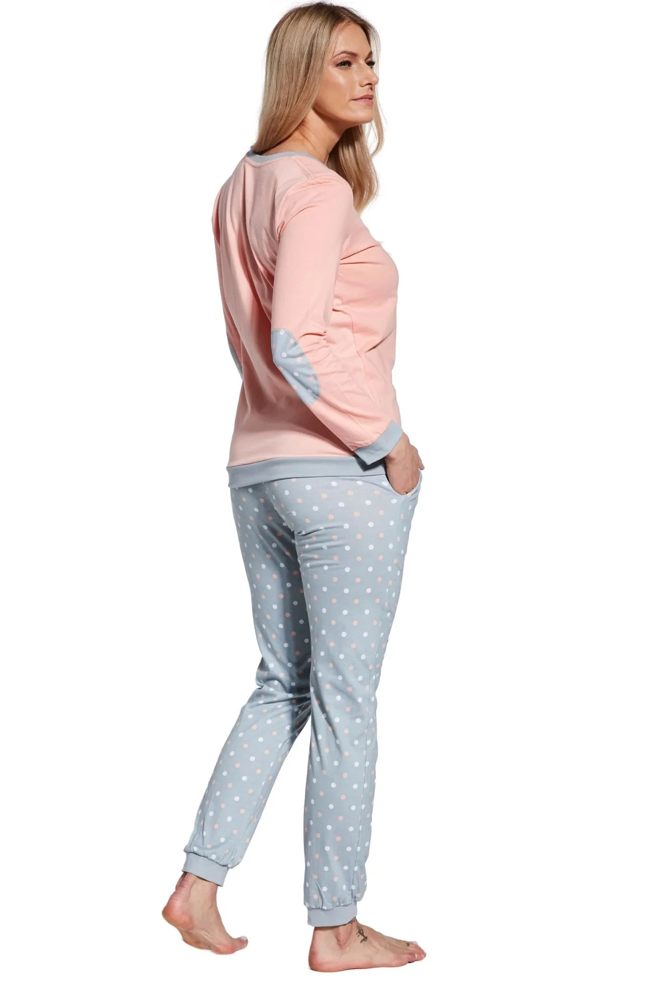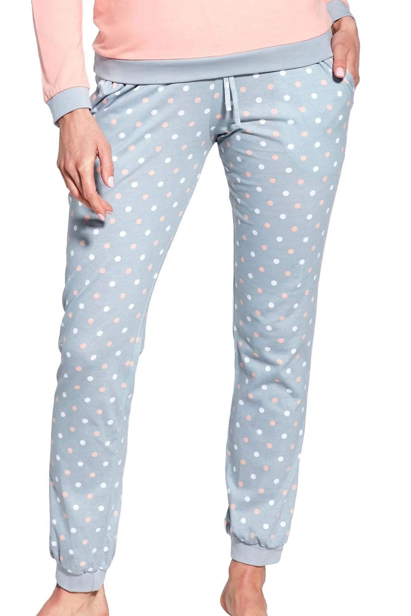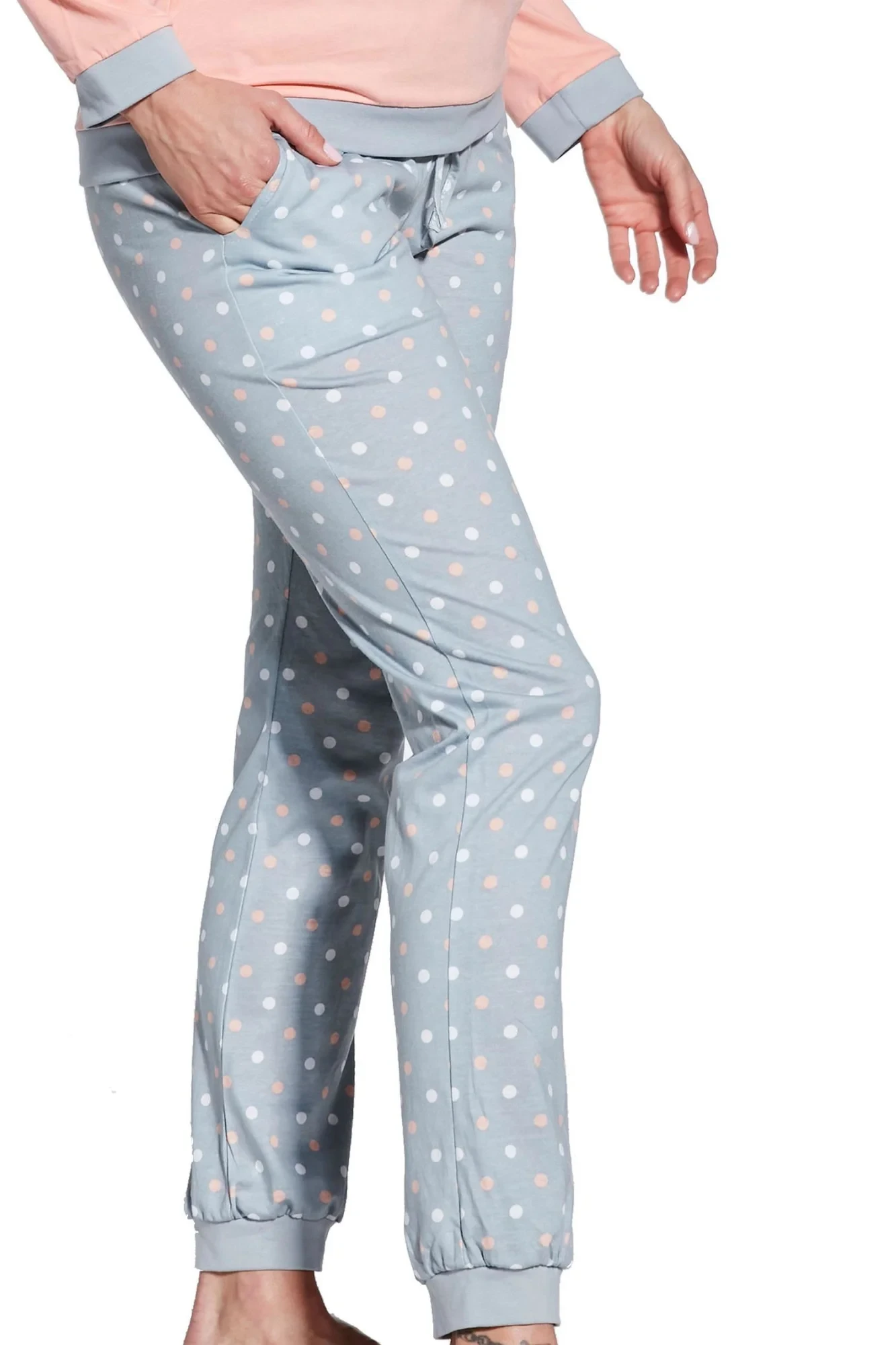 Dámské pyžamo 634/60 Meggie CORNETTE - z vysoce kvalitní a na dotyk příjemné bavlny - broskvové tričko s dlouhými rukávy - zdobené lemy - dlouhé vzorované kalhotyMateriálové složení: 100% bavlna