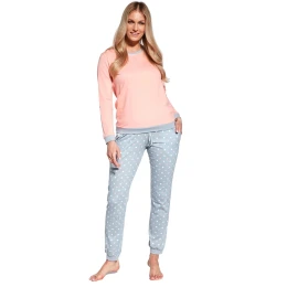 Dámské pyžamo 634/60 Meggie CORNETTE - z vysoce kvalitní a na dotyk příjemné bavlny - broskvové tričko s dlouhými rukávy - zdobené lemy - dlouhé vzorované kalhoty