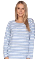 Dámské pyžamo 648 pink REGINA - z vysoce jakostní froté bavlny - růžové pruhované tričko s dlouhými rukávy - dlouhé jednobarevné kalhoty růžové barvy