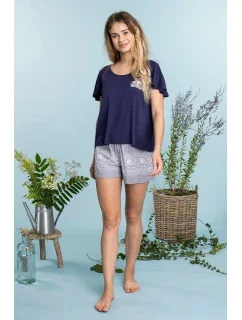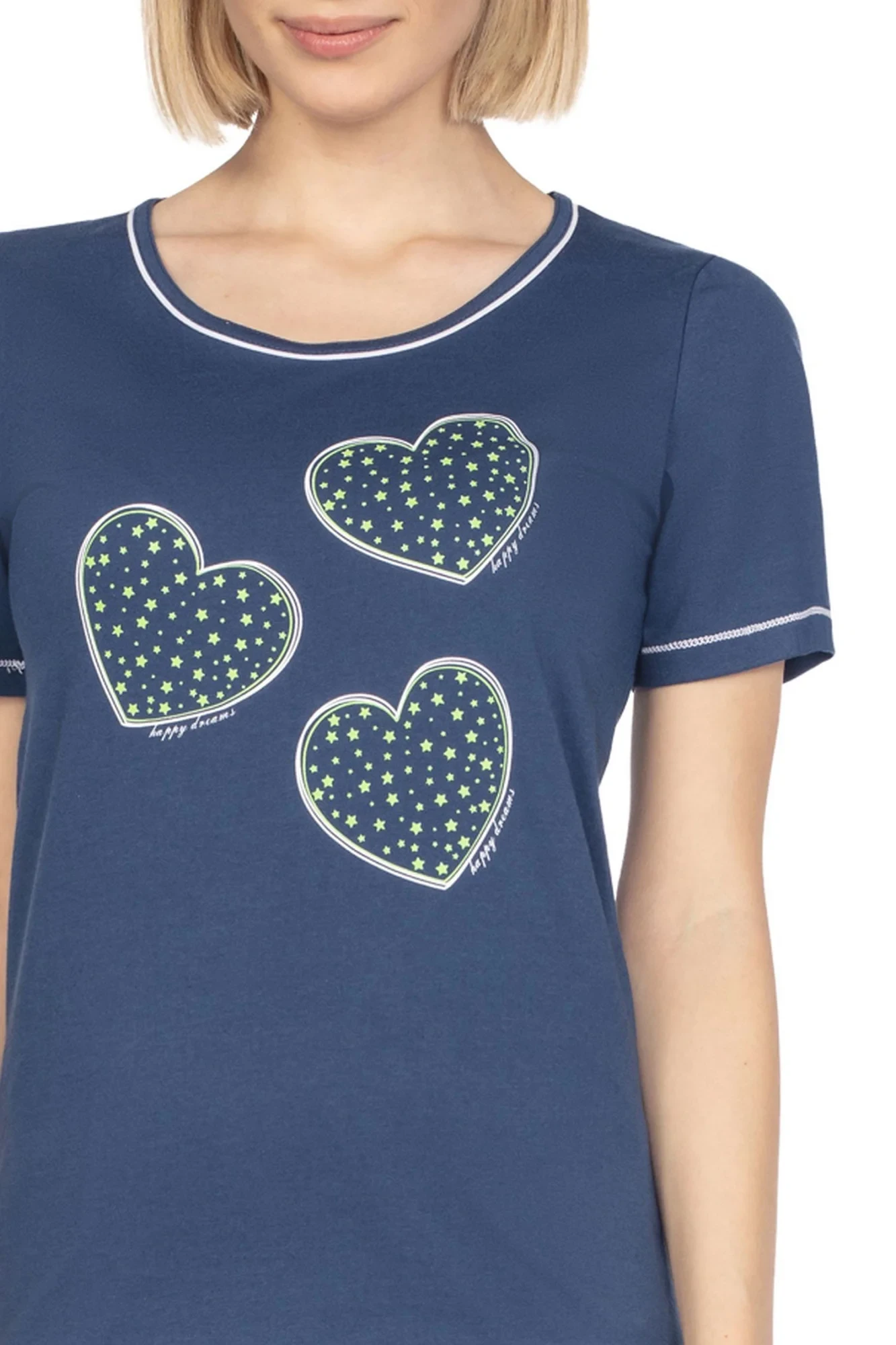 Dámské pyžamo 667 dark blue plus REGINA - z vysoce jakostní bavlny - světle modré tričko s krátkými rukávy - ozdobené srdíčky na přední straně - pohodlné jednobarevné kalhotyMateriálové složení: 100% bavlna