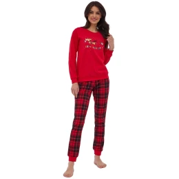 Dámské pyžamo 671/371 Celebrate CORNETTE - z vysoce jakostní bavlny - červené tričko s dlouhými rukávy - zdobené potiskem na přední straně - dlouhé kárované kalhoty - vánoční kolekceMateriálové složení: 100% bavlna