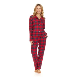 Dámské pyžamo 7125 Doctornap - z vysoce jakostní bavlny - červená károvaná košile s dlouhými rukávy - s límečkem - zapínání na knoflíky - dlouhé červené kalhoty s kapsami - certifikát OEKO-TEX Standard 100