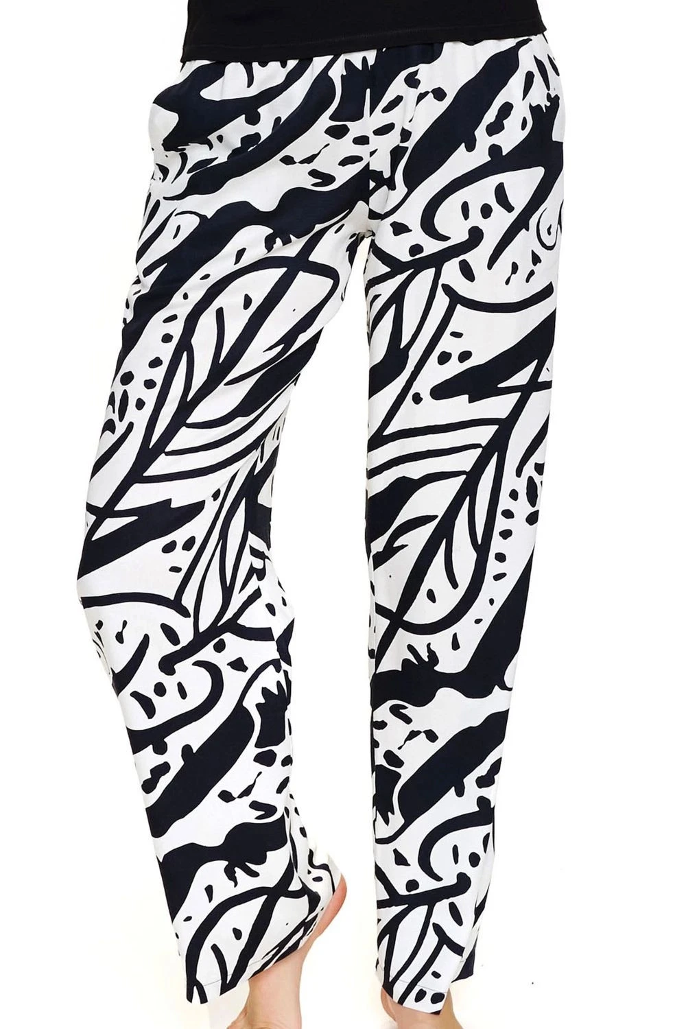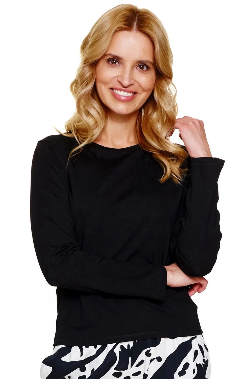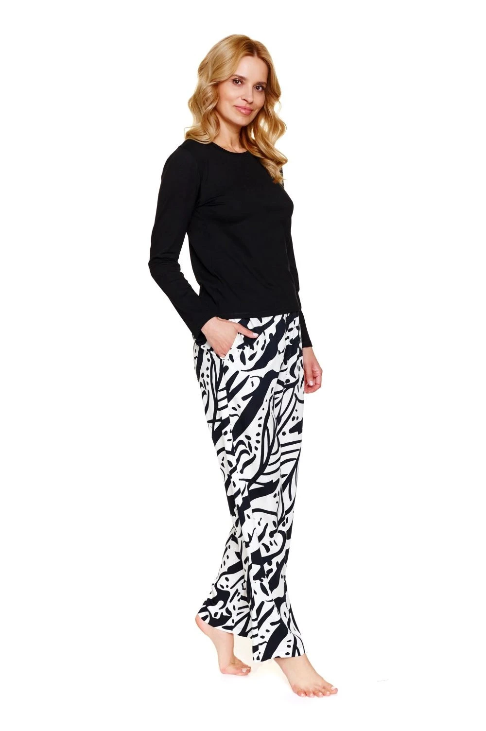 Dámské pyžamo 7309 Doctornap - z vysoce jakostní viskózy - černá halenka s dlouhými rukávy - kulatý výstřih - dlouhé volné nohavice s potiskem - s kapsami