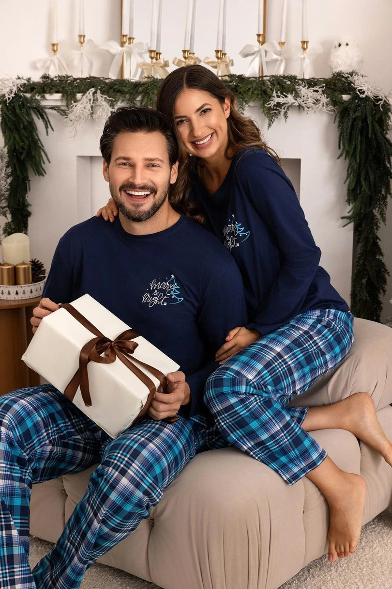 Koszulka z długim rękawem posiada półokrągły dekolt, który wygodnie układa się pod szyją i nie krępuje ruchów. Przód koszulki ozdobiono subtelnym nadrukiem, który dodaje całości kobiecego charakteru. W komplecie znajdują się długie spodnie w ponadczasową kratę — luźne, wygodne i świetnie sprawdzające się w chłodniejsze wieczory. Piżama ma klasyczny, uniwersalny fason, dlatego będzie doskonała zarówno na co dzień, jak i jako prezent.