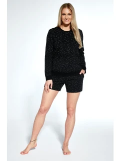 Dámské pyžamo ušité z vysoce kvalitní měkké bavlny. Vzorované tričko s dlouhými rukávy. doplněné krátkými šortkami s kapsami. Pyžamo zabalené v krabici.