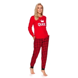 Dámské pyžamo 9748 Doctornap - z vysoce jakostní bavlny - červené tričko s dlouhými rukávy - zdobené nápisem QUEEN na přední straně - dlouhé kárované kalhoty s kapsami - certifikát OEKO-TEX Standard 100