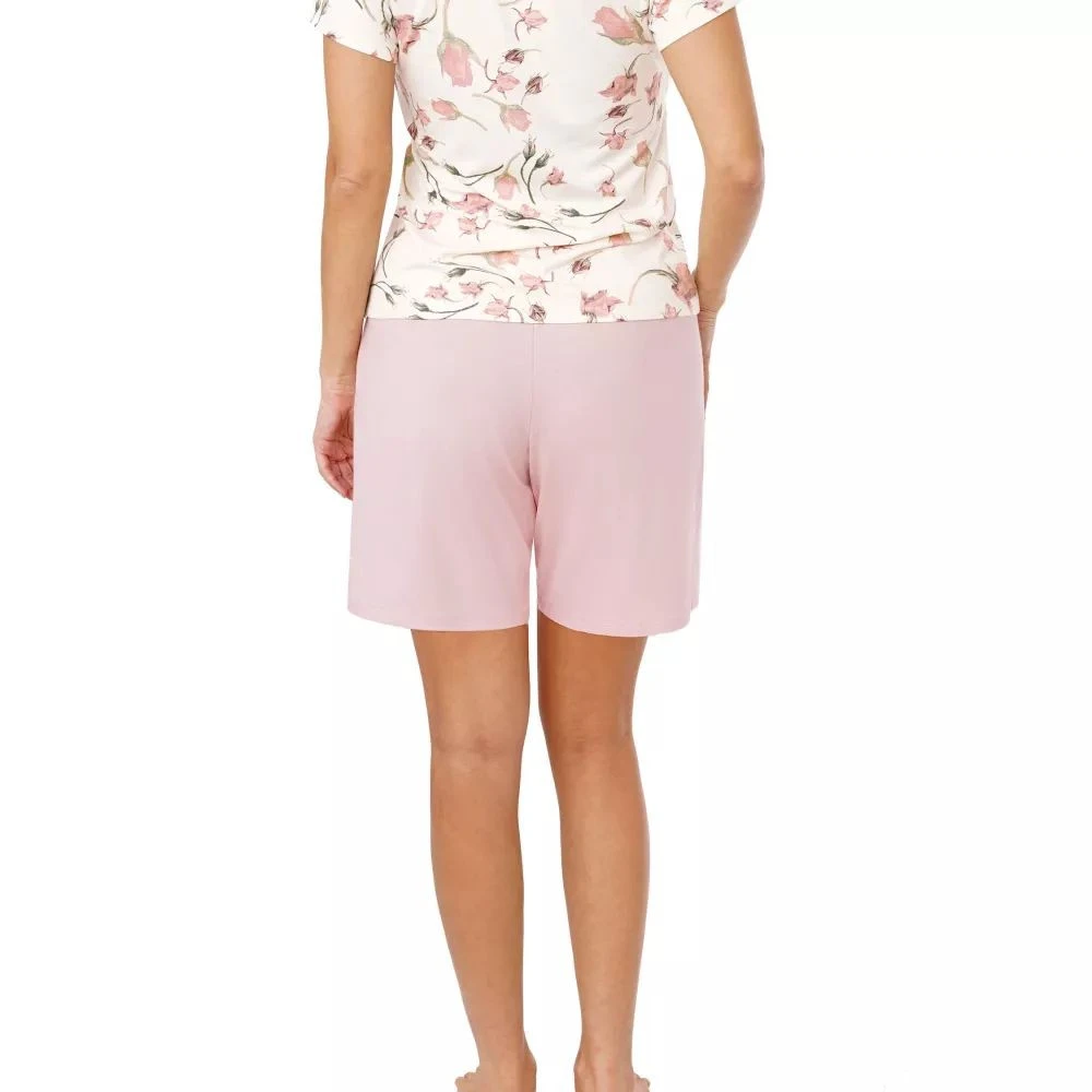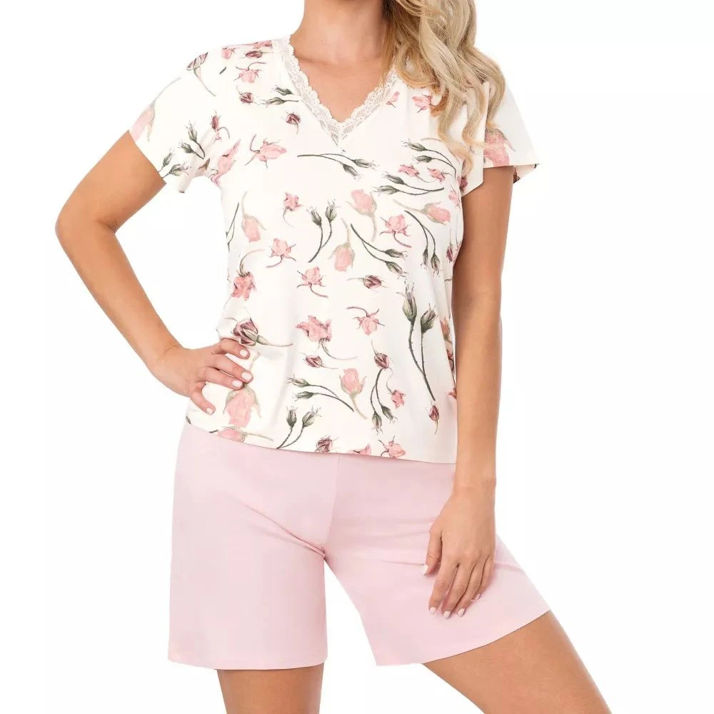 Dámské pyžamo Amaris 1/2 Donna - z vysoce jakostní viskózy - s květinovým motivem - tričko s krátkými rukávy - výstřih zdobený krajkou - kraťasy růžové barvy