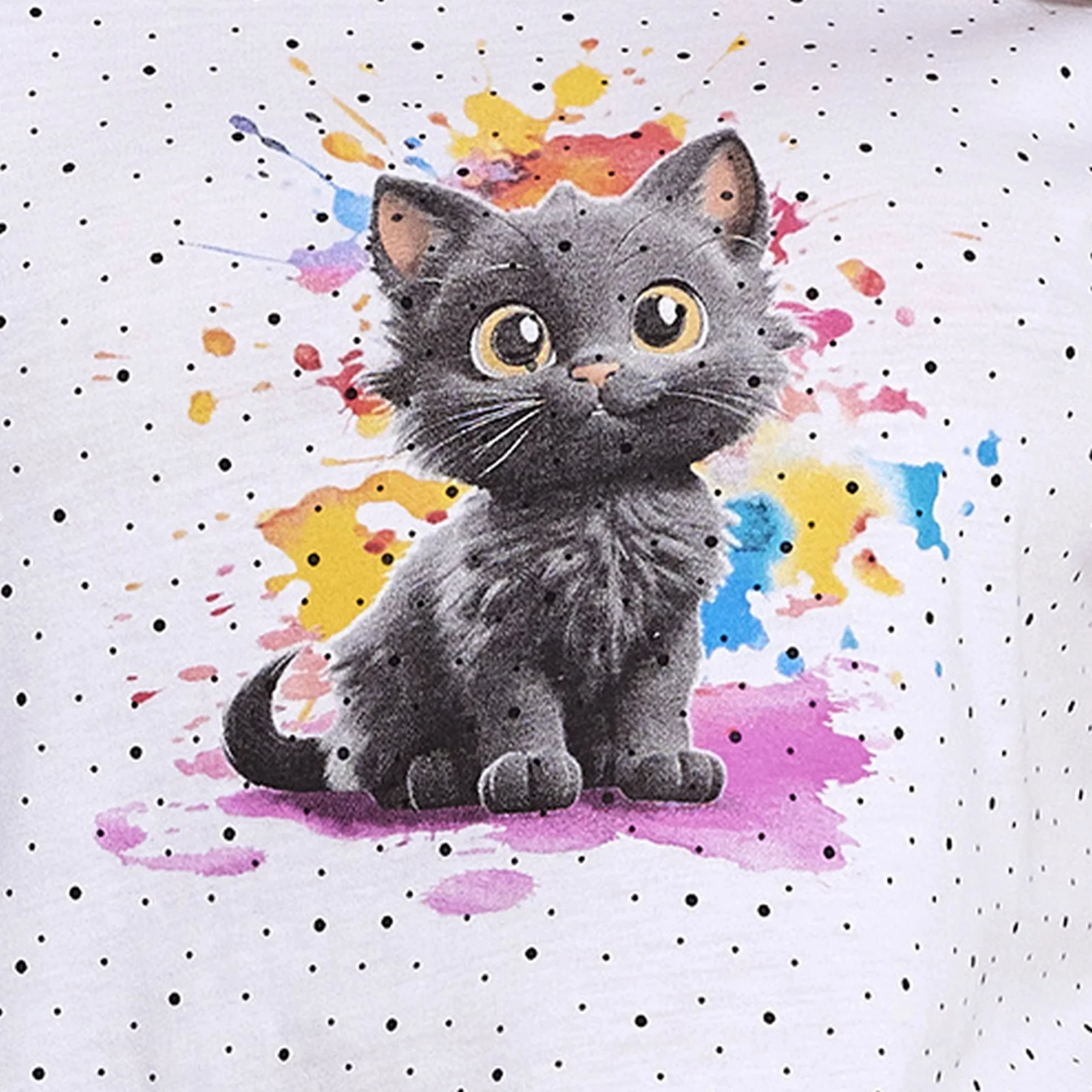 Dámské pyžamo 053/299 Black cat CORNETTE - bílá barva - z vysoce jakostní bavlny - bílé tričko s krátkými rukávy - půlkulatý výstřih s lemováním - ozdobené potiskem na přední straně - šedé kraťasy s kapsami - ozdobné vázání v pase