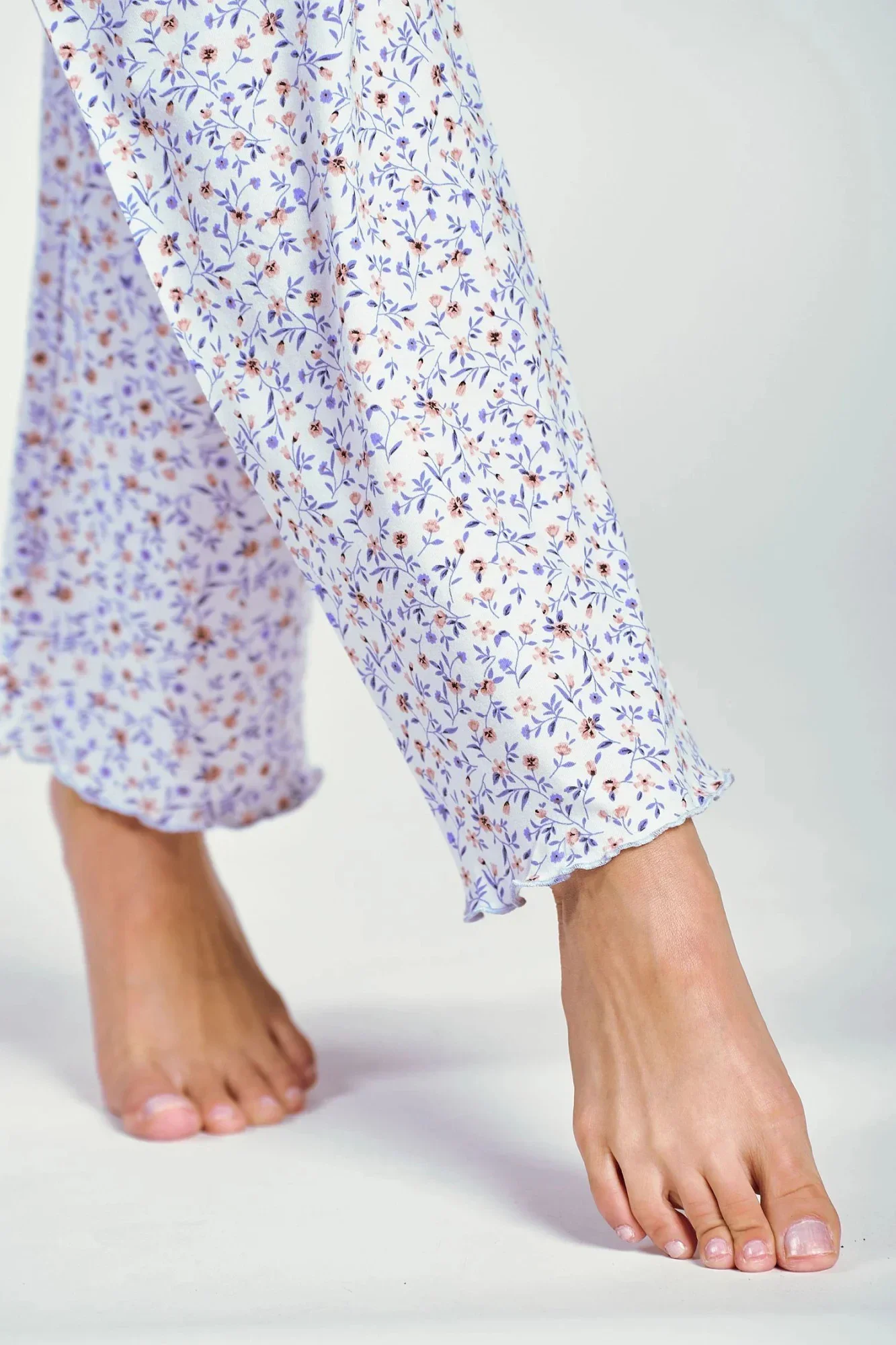 Dámské pyžamo 3240 Ariella blue TARO - z vysoce jakostní bavlny - tričko světle modré barvy s tříčtvrtečními rukávy - na přední straně zdobené potiskem - vzorované dlouhé kalhoty