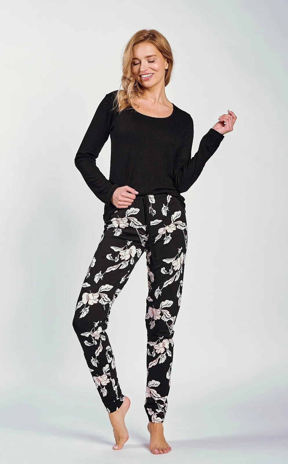 - dlouhé bavlněné kalhoty s květinovým potiskem