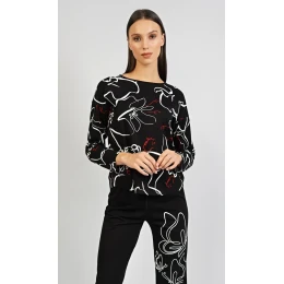 Dámské pyžamo dlouhé Lucie. Dámské pyžamo se skládá z trička s dlouhým rukávem a dlouhých kalhot. Triko je černé s bílým nepravidelným vzorem. Kalhoty jsou jednobarevné s kresbou tří motýlů., jsou do gumy, na stažení šňůrkou a bez kapes. Použitý materiál je poddajný a příjemný na dotek.