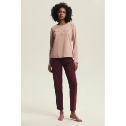 Odkryj wyjątkową wygodę i styl w kobiecej piżamie DORLA 43733 AW25. Ten dwuczęściowy komplet składa się z długiego rękawa w delikatnym różowym odcieniu z subtelnym napisem oraz bordowych spodni z elastycznym pasem. Uszyta w 100% z miękkiej bawełny, piżama gwarantuje komfort przez całą noc i sprawdzi się również jako strój do leniwych poranków lub spokojnych wieczorów. Naturalna tkanina oddycha i dba o Twoją skórę, nie powodując podrażnień. Idealna dla kobiet ceniących połączenie wygody i estetyki w domowym wydaniu.