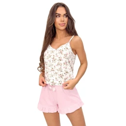 Spodenki w kolorze pudrowego różu, wykończone subtelną falbanką, dodają uroku i lekkości, a dekoracyjna różowa kokardka w pasie stanowi elegancki akcent. Piżama EMILIA to doskonały wybór nie tylko do spania, ale również na leniwe porEAN čárové kódy zboží jsou: