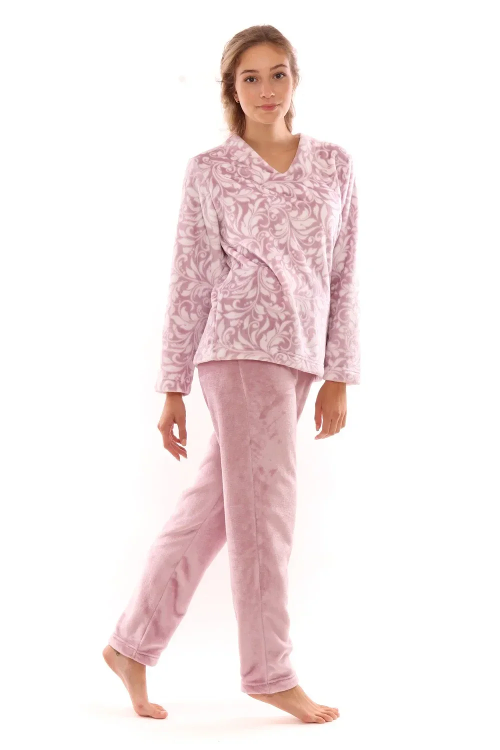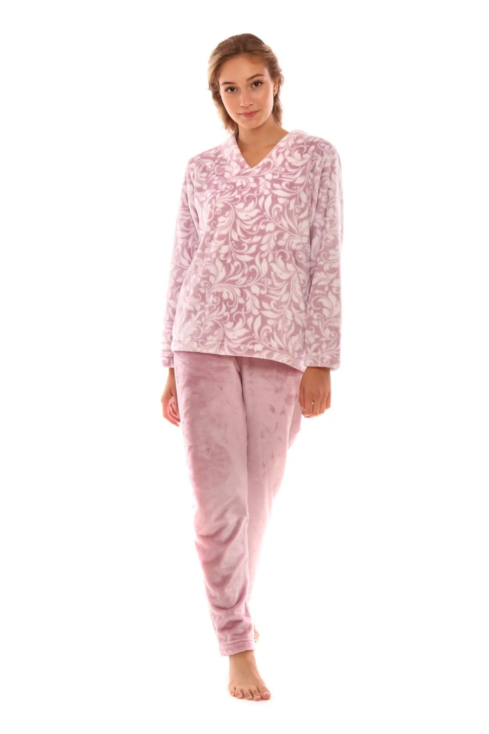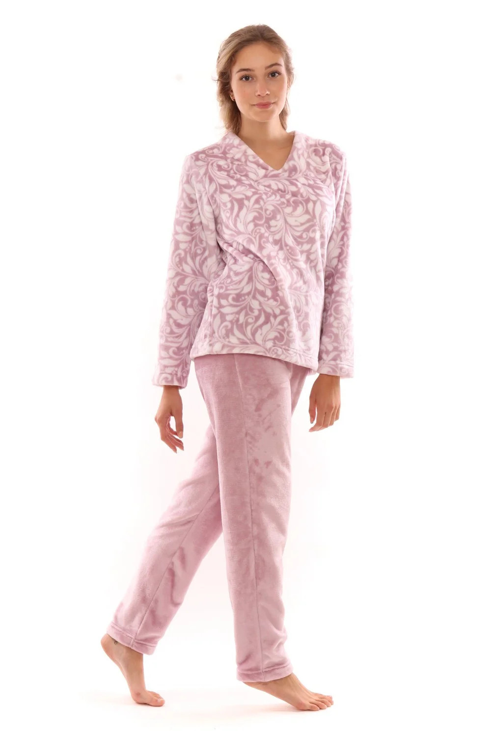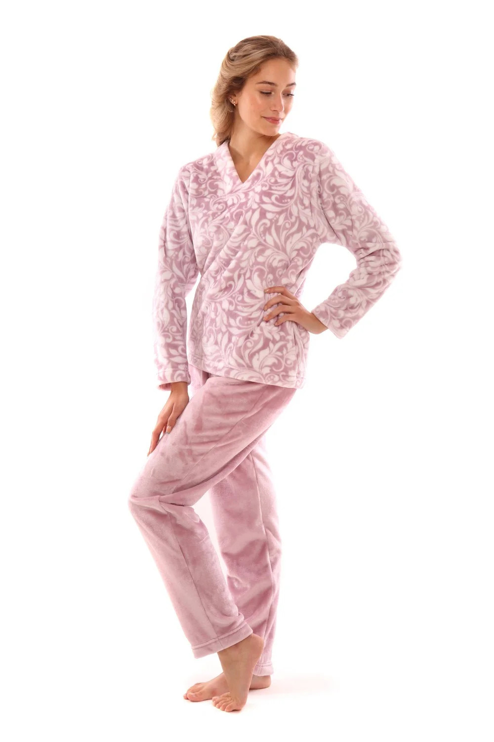 Svůdně a přitom pohodlně se budete cítit v domácím oblečení z kolekce Flora vyrobeném z jemného materiálu flannel fleece s decentním květinovým vzorem, který kombinujeme s jendnobarevnou variantou pro dosažení moderní a zároveň nadčasové elegance. Chladné dny vám zpříjemní tento domácí komplet jednoduchých pohodlných kalhot v pase s gumou, kterou lze snadno přizpůsobit vašemu pasu a volné mikiny s výstřihem do V. Flannel fleece je sametově hebký a lesklý materiál, nemačká se, nežehlí se, snadno se pere a lze jej bez problémů sušit v sušičce na nízký teplotní stupeň. Dopřejte si pocit výjimečnosti každý den.