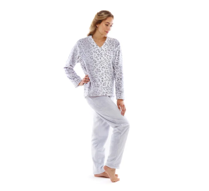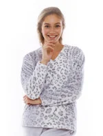 Svůdně a přitom pohodlně se budete cítit v domácím oblečení z kolekce Irbis vyrobeném z jemného materiálu flannel fleece s motivem kožešiny sněžného leoparda v kombinaci se stříbřitě šedou. Chladné dny vám zpříjemní tento domácí komplet jednoduchých pohodlných kalhot v pase s gumou, kterou lze snadno přizpůsobit a volné mikiny s výstřihem do V. Flannel fleece je sametově hebký a lesklý materiál, nemačká se, nežehlí se, snadno se pere a lze jej bez problémů sušit v sušičce na nízký teplotní stupeň. Během chladných večerů a studených rán zůstaňte v teple v náruči velké heboučké kočky.