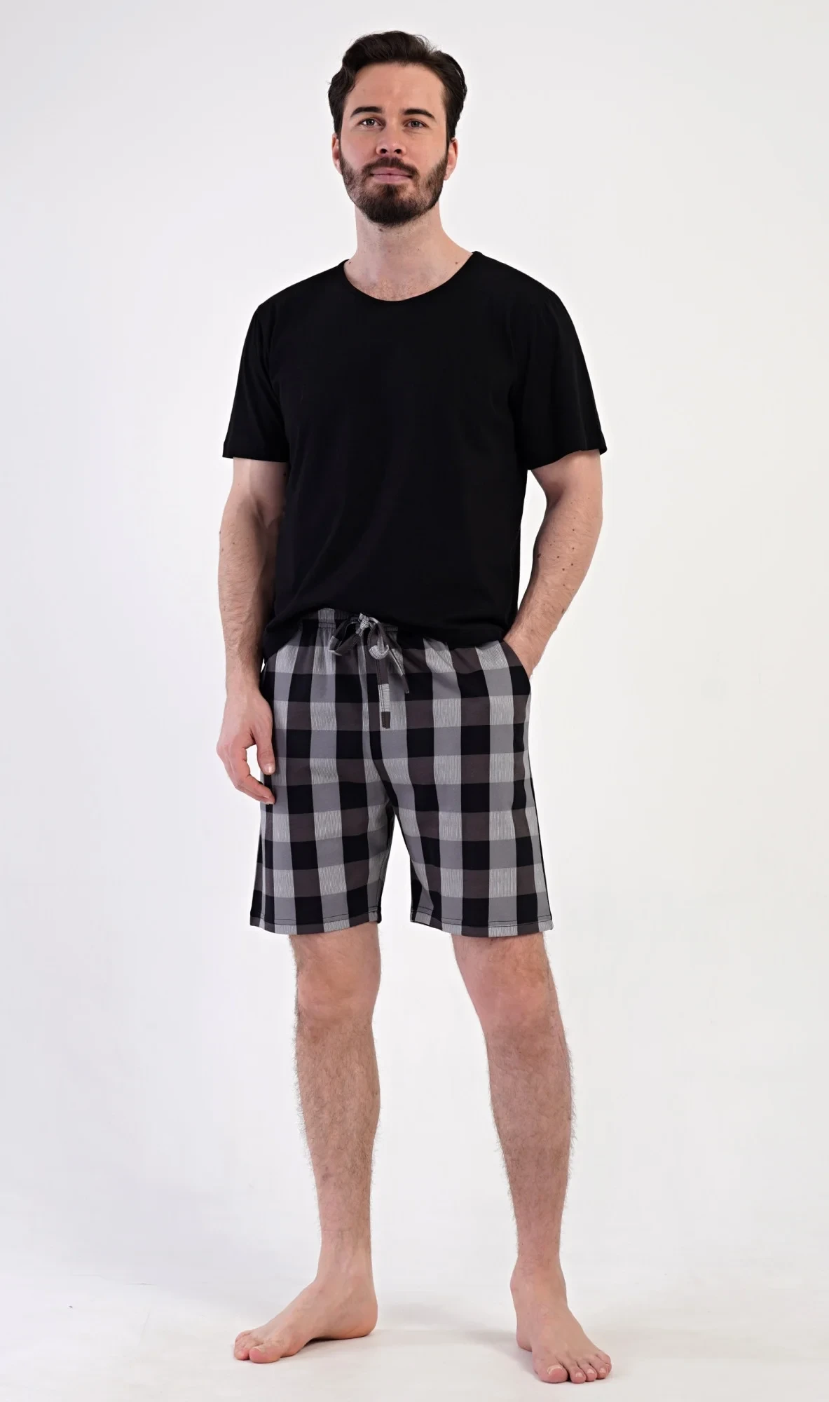 Pánské bavlněné pyžamové šortky Eda. Kostkované šortky mají v pase gumu, šňůrku na stažení a praktické kapsy. Mateiriál s podílem bavlny 100% je příjemný a poddajný na dotek. Pyžamové šortky jsou vhodné i na denní nošení pro volnočasové aktivity.